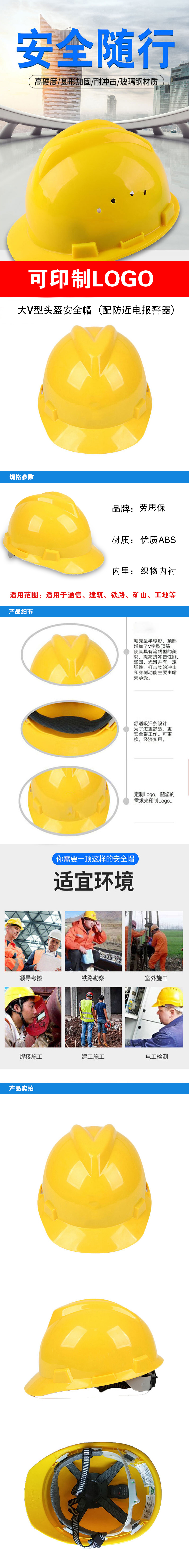 劳思保 LSB-TK-A 高性能ABS塑料V型头盔安全帽(配防近电报警器)黄色/1顶 黄色