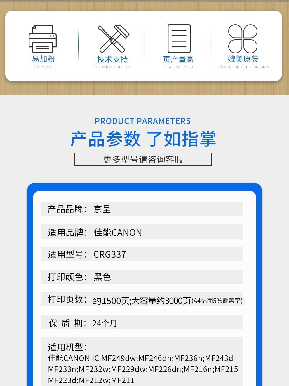京呈337硒鼓适用佳能MF249dw打印机MF246dn/243d/240/MF236n墨盒233n CRG337 大容量黑色硒鼓/1支装