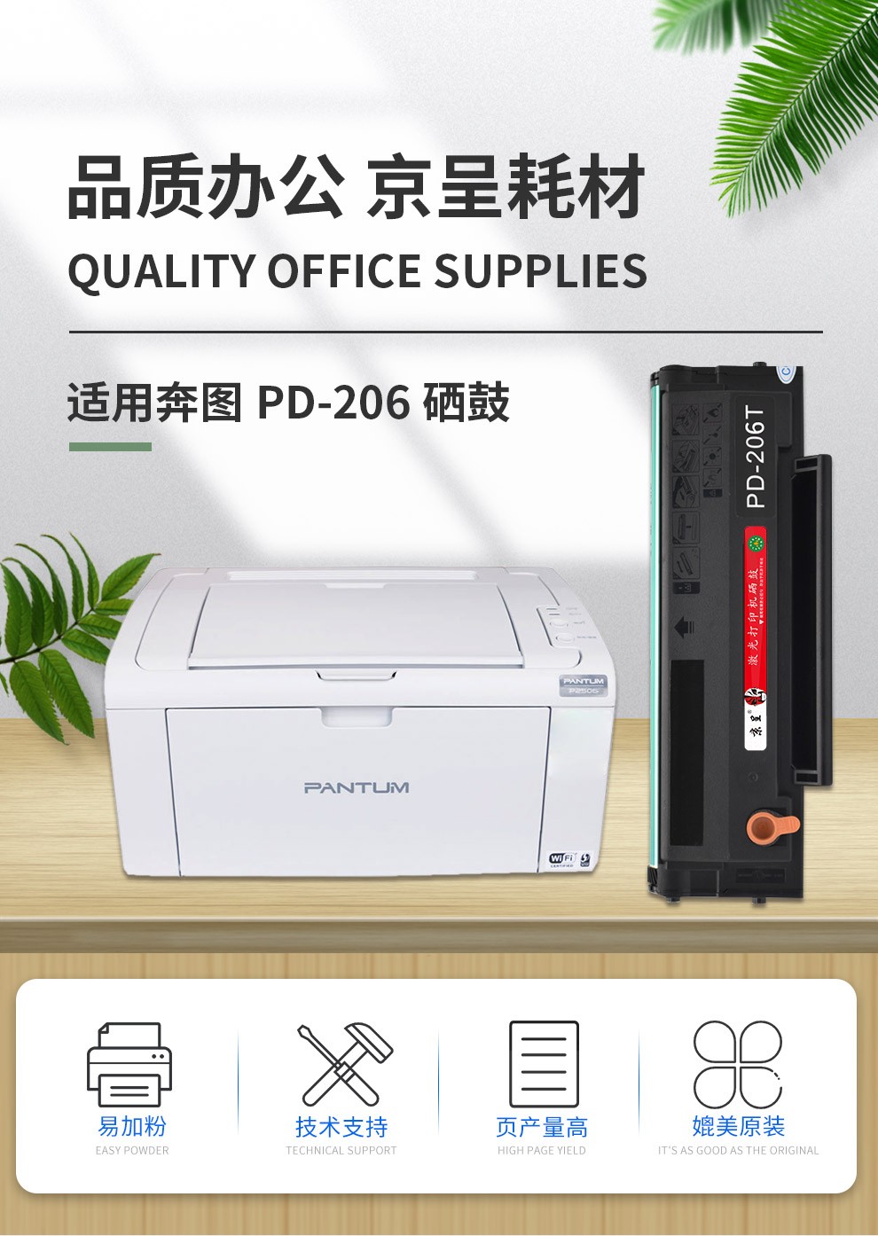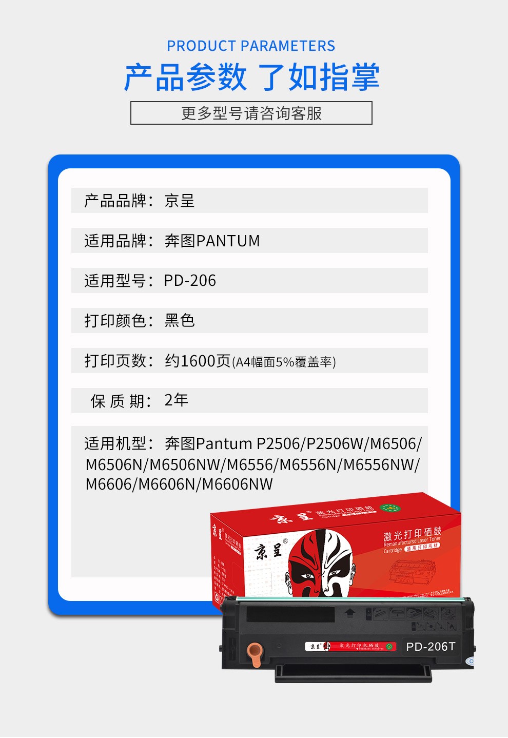 京呈PD-206硒鼓适用奔图P2506 P2506W M6506易加粉墨盒M6506 M6606碳粉 PD206黑色碳粉60g/瓶