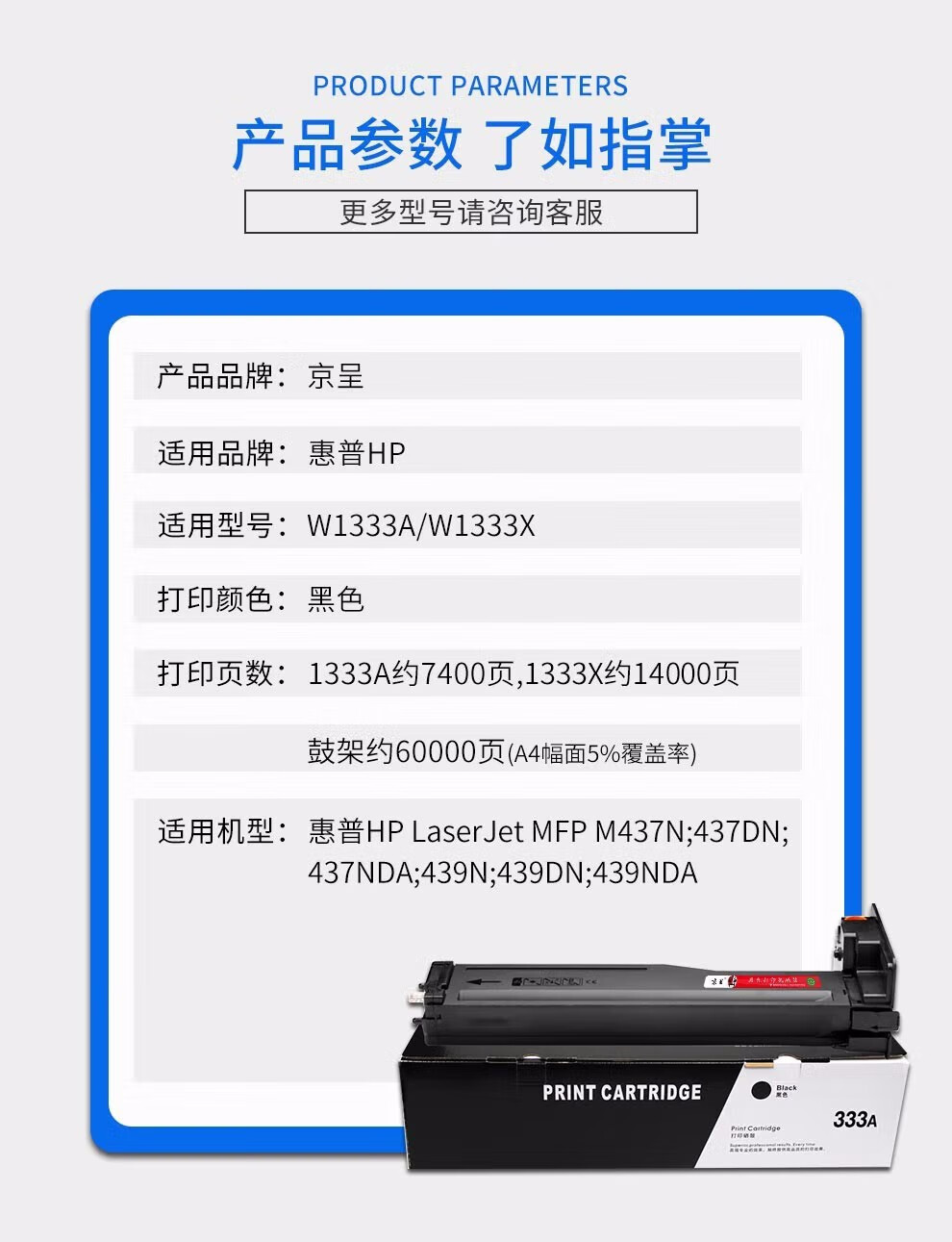 京呈W1333A粉盒适用惠普m437n\dn\439n打印机437nda\439nda\dn硒鼓墨盒/支 W1333X黑色粉盒 大容量1支(140
