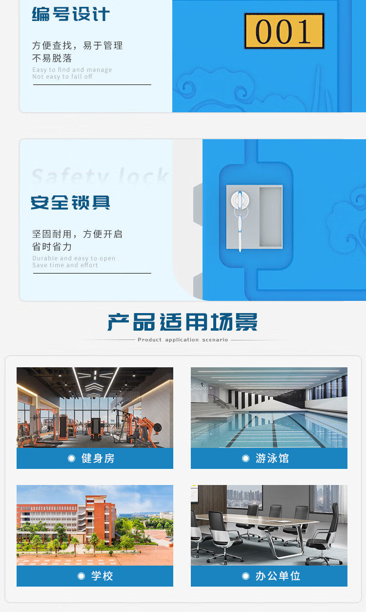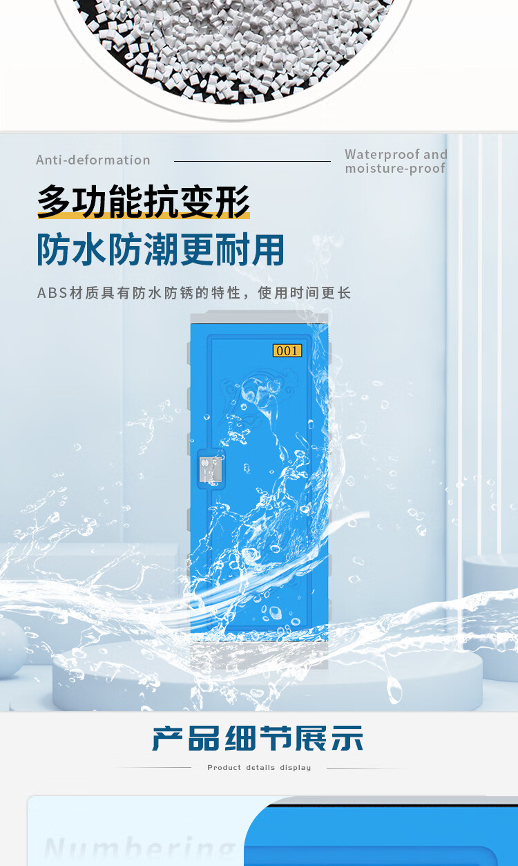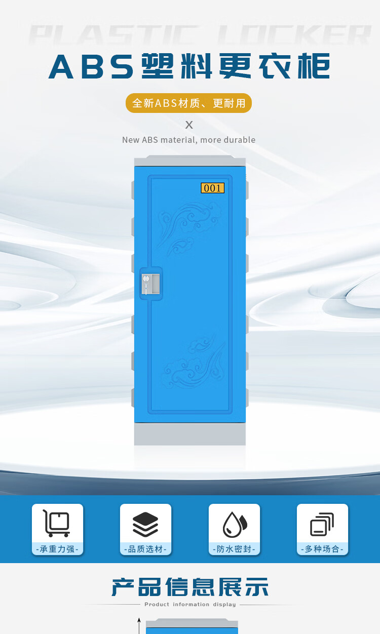 臻远ZY-ABS-5ABS塑料更衣柜健身房组合寄存包柜学生书包柜915*385*470 个 蓝色