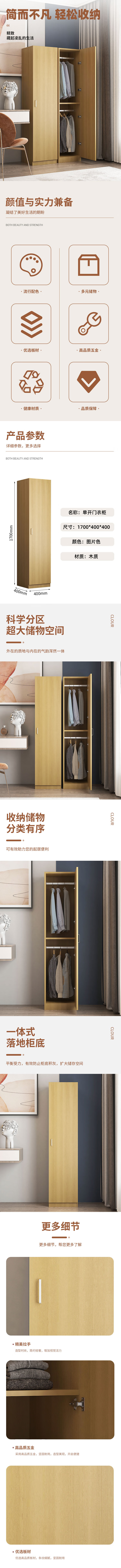 臻远ZY-MZYG-15简约木质衣柜卧室单开门衣柜夹缝储物柜白枫色C款单门 个 木色