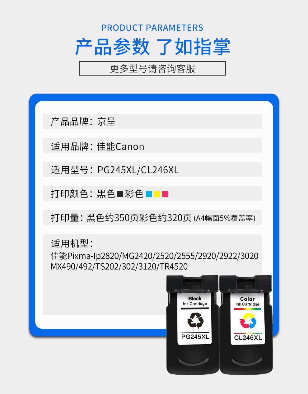 京呈PG245XL墨盒适用佳能MX492MG2920 2520 2522TS3120打印机CL246 PG245/CL246XL墨盒套装