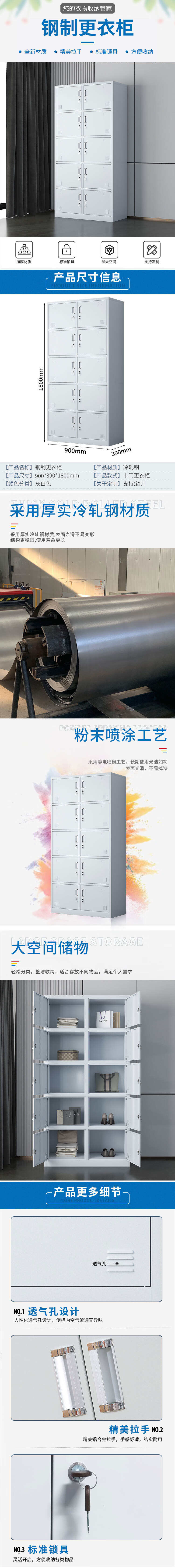 臻远ZY-GYGA-8更衣柜铁皮柜健身房存包柜更衣室衣柜鞋柜 10门更衣柜 个 灰白色