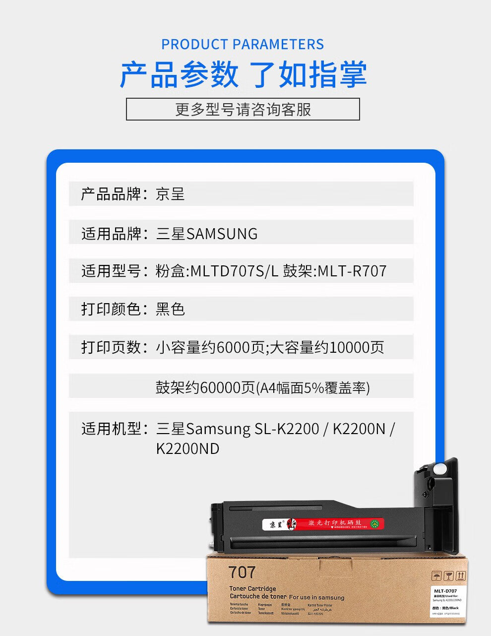 京呈MLT-D707L粉盒适用三星复印机K2200碳粉/墨粉盒K2200nd墨盒707打印机硒鼓/支 MLT-D707L黑色大容量10000页