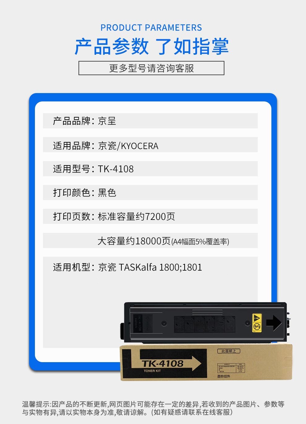 京呈TK4108粉盒适用京瓷TASKalfa 1800墨粉京瓷1801复印机碳粉盒京瓷4108硒鼓 TK4108黑色 标准版(7200页)