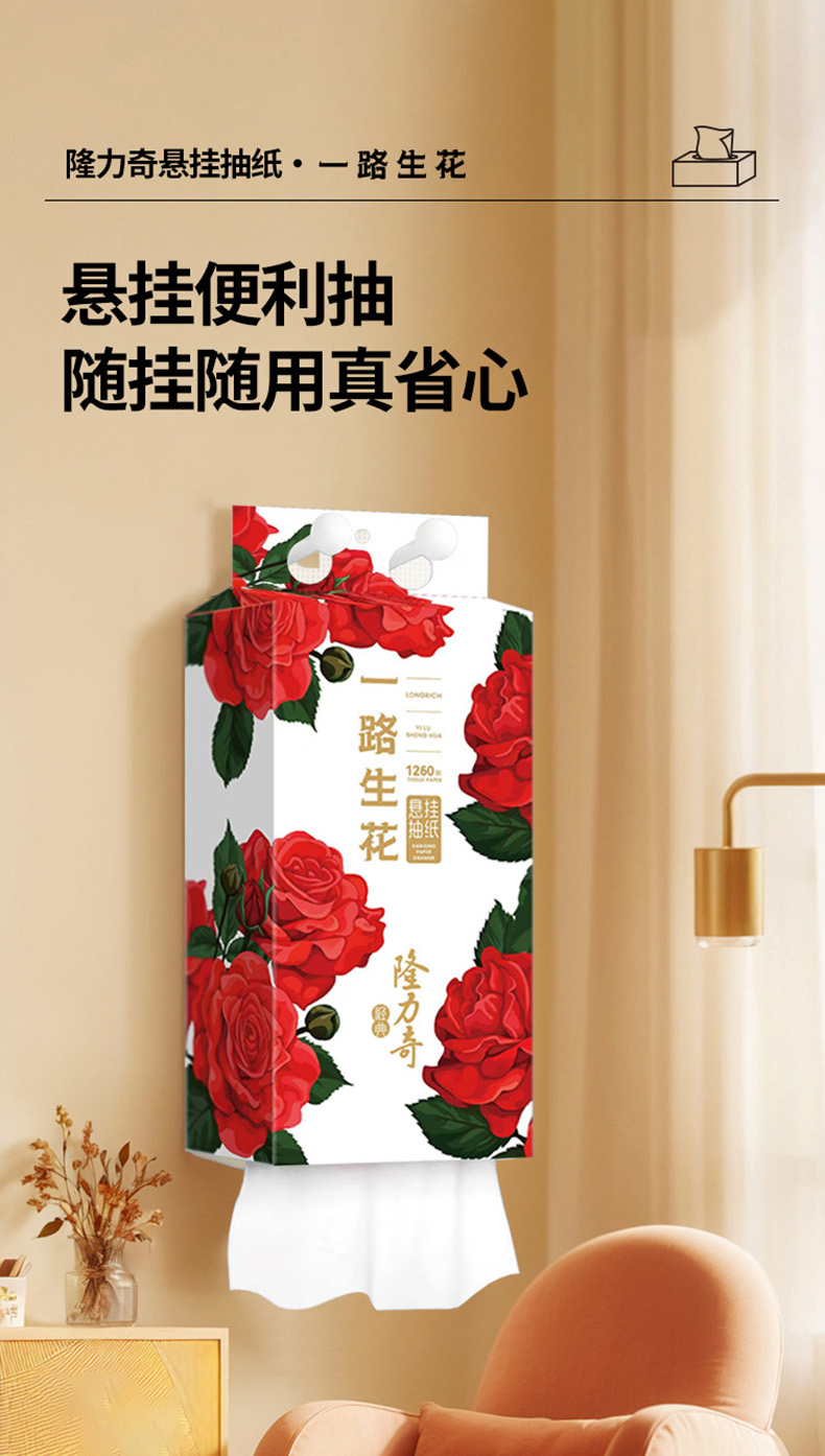 隆力奇 LLQ-001 4层/315抽 *3提 悬挂抽纸组合 玫瑰红色(单位:箱)