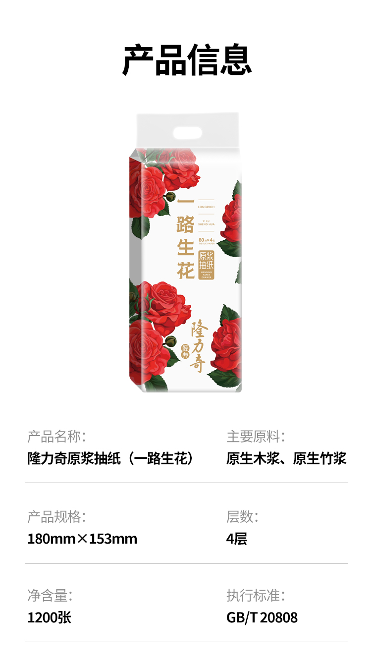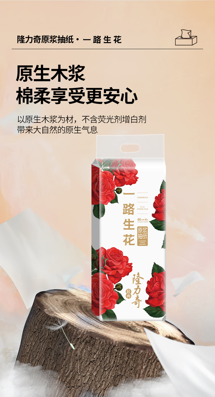 隆力奇 LLQ-003 4层75/抽*10提 悬挂抽纸组合 玫瑰红色(单位:箱)