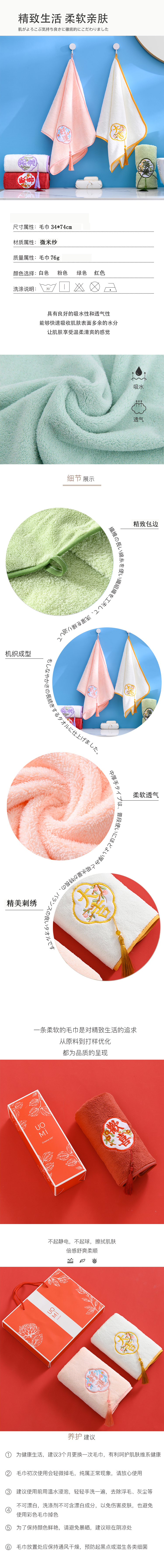UOMI 优好运-1 34*74cm76g 国风刺绣微米纱毛巾 混色(单位:套)