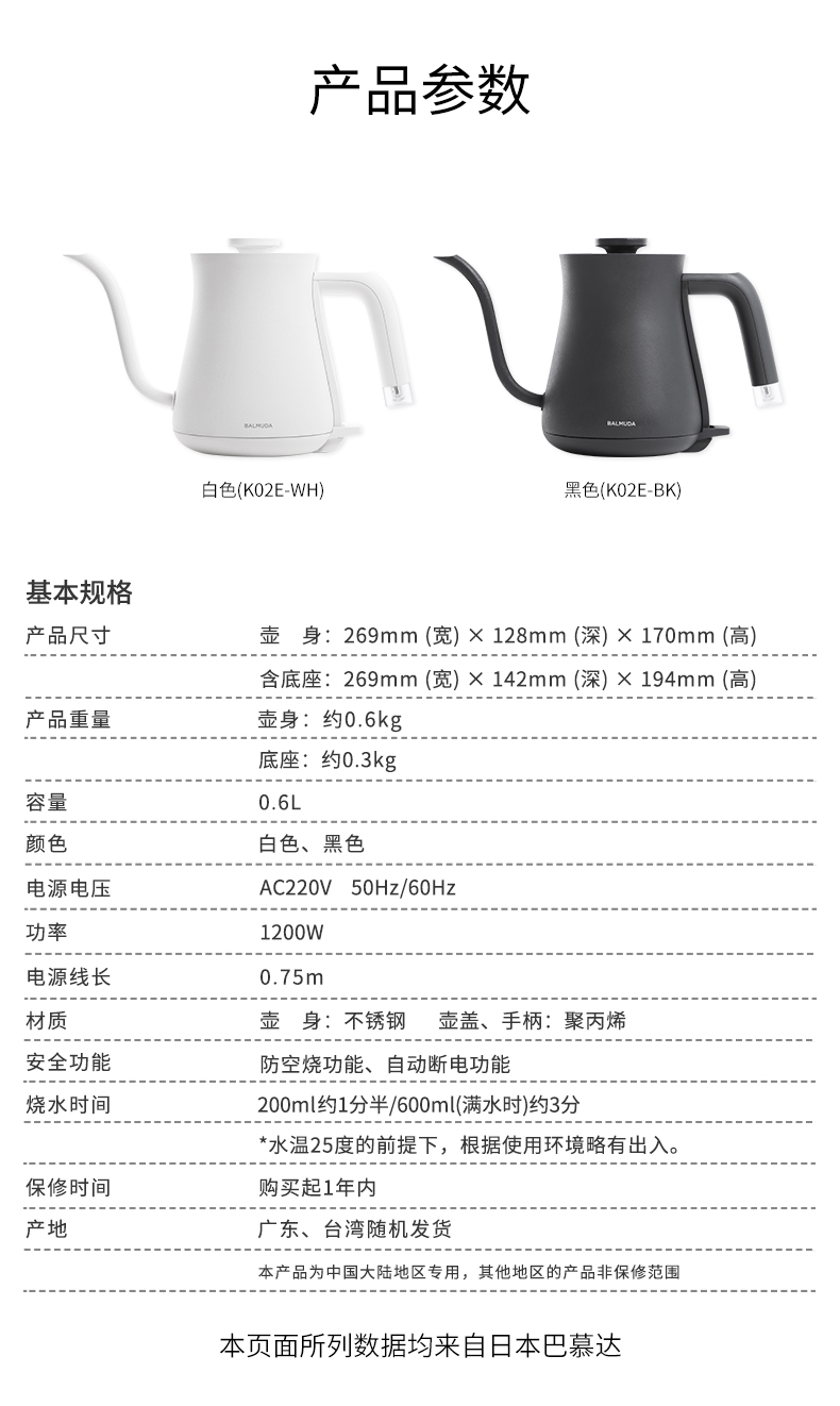 巴慕达电水壶K02E-WH(单位:台) 白色