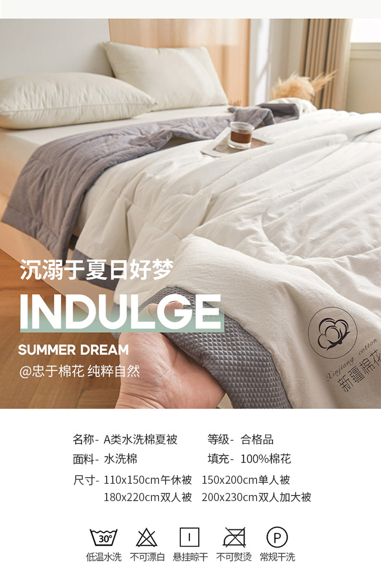 樵纪 棉白 午休被 软糯糯水洗棉棉花夏被 110x150cm 绿色(单位:床)