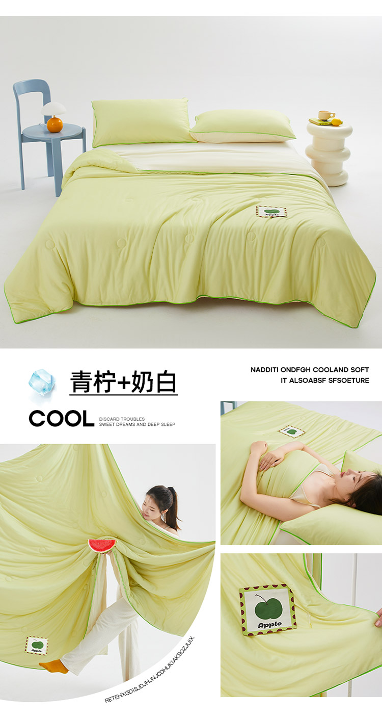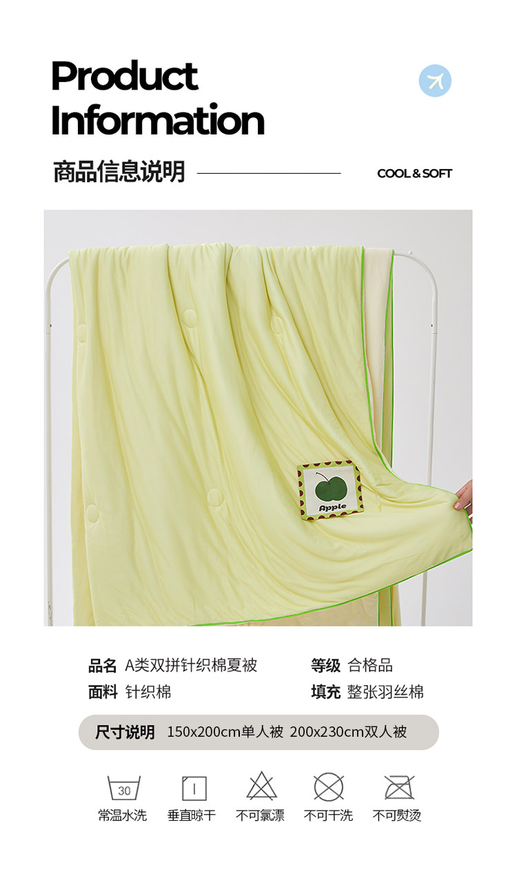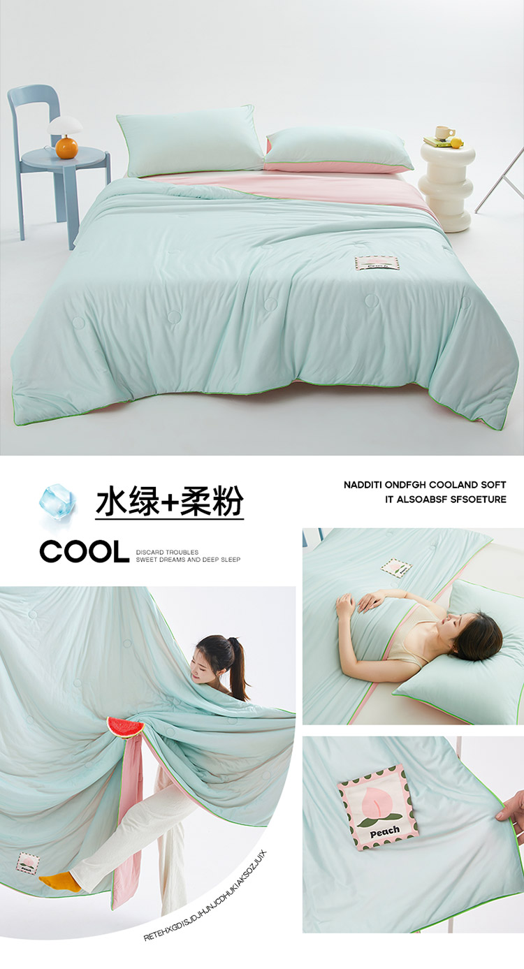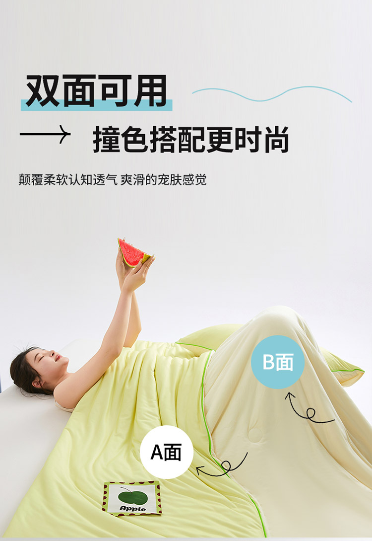 樵纪 撞色 双人被 双面凉感针织棉夏凉被 200x230cm 水绿色(单位:床)