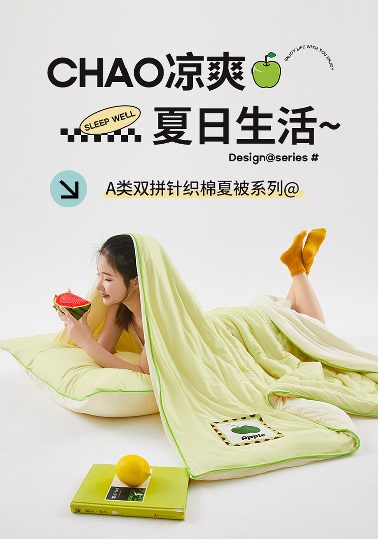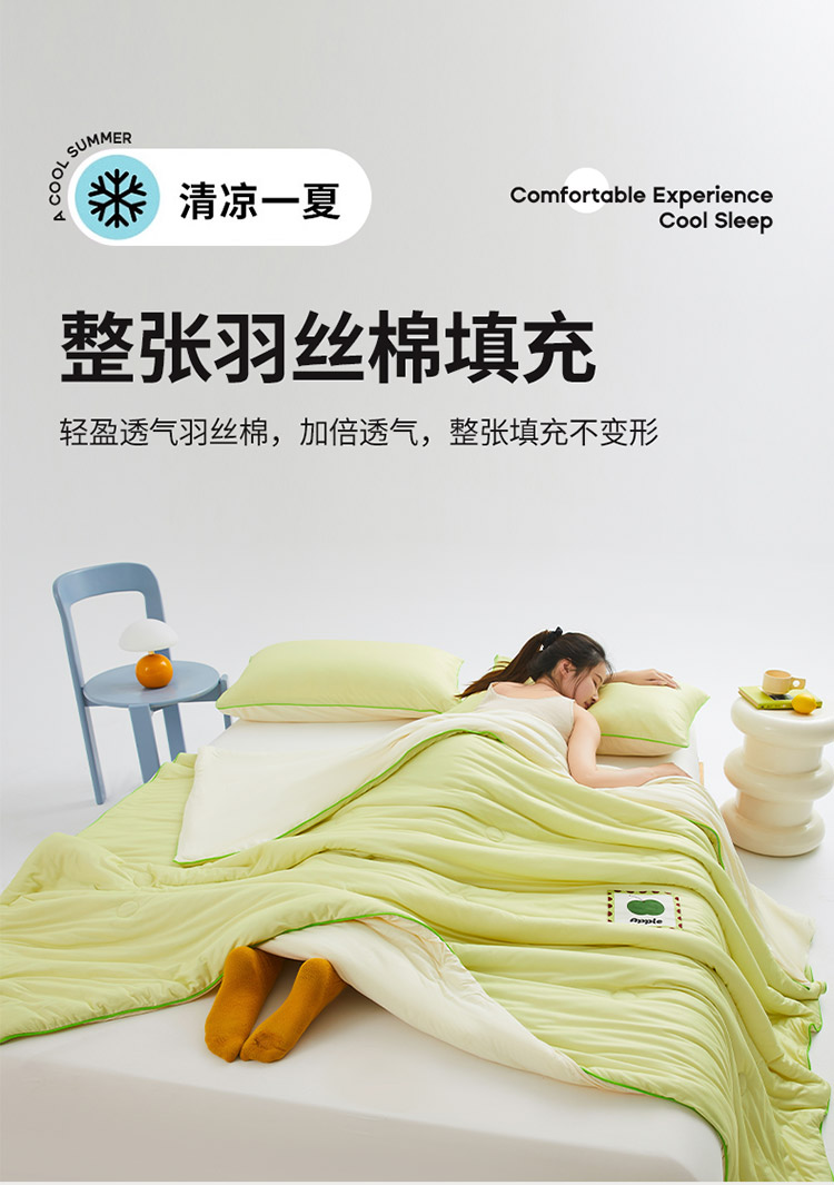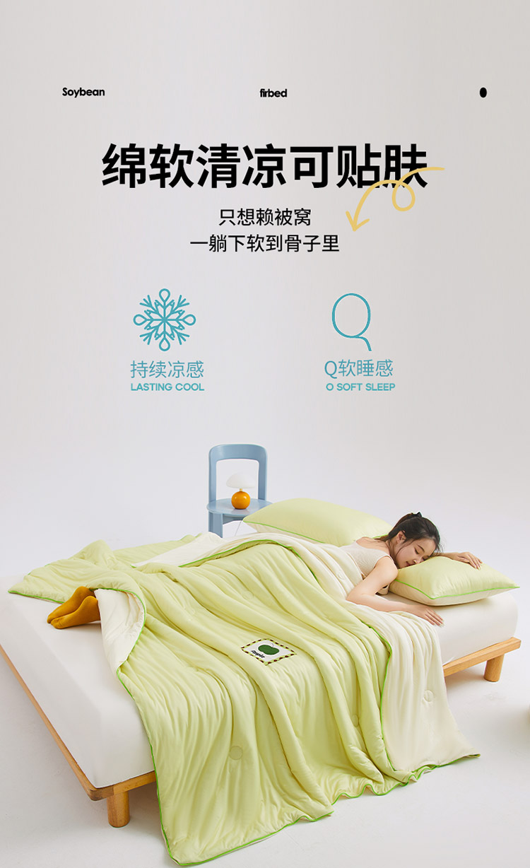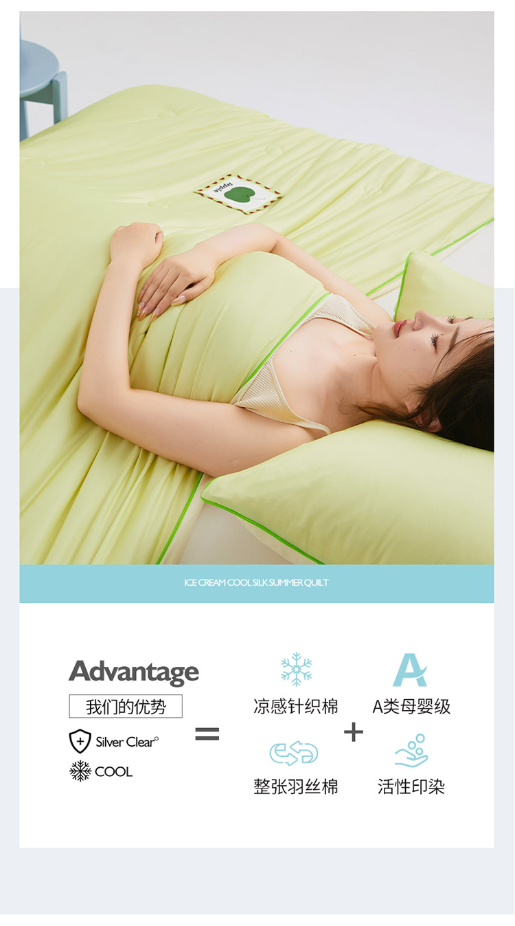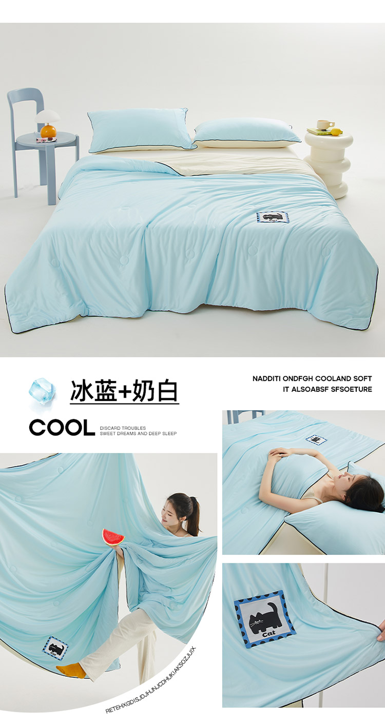 樵纪 撞色 双人被 双面凉感针织棉夏凉被 200x230cm 水绿色(单位:床)