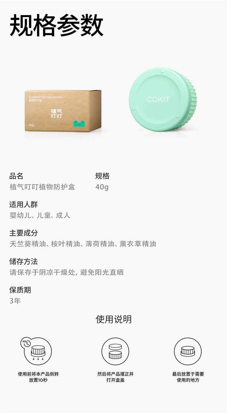 植气叮叮 S00110 40g/盒*5 植物防护盒驱蚊盒 绿色(单位:组)