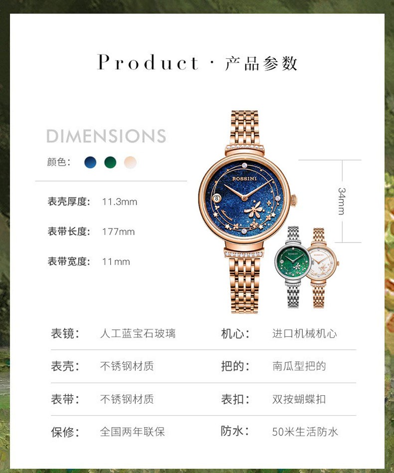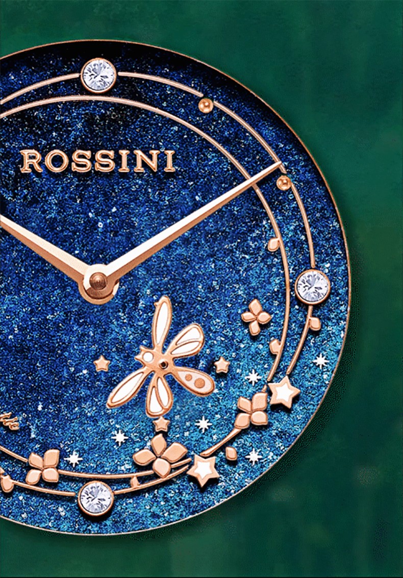 Rossini罗西尼 典美系列 机械手表星空蓝玫金钢带女表50082G05C(单位:块) 蓝色