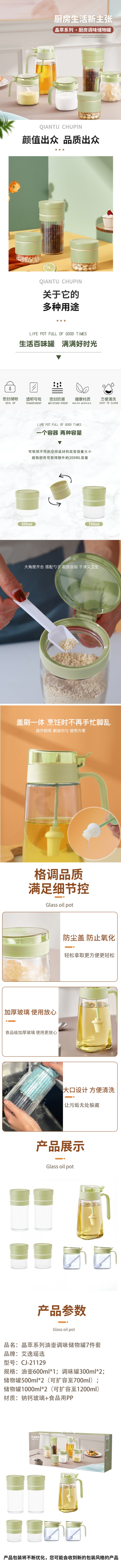 艾逸瑶选 CJ-21129 晶萃系列油壶调味储物罐7件套(单位:套) 绿色