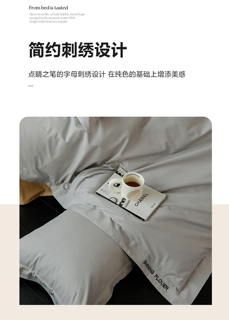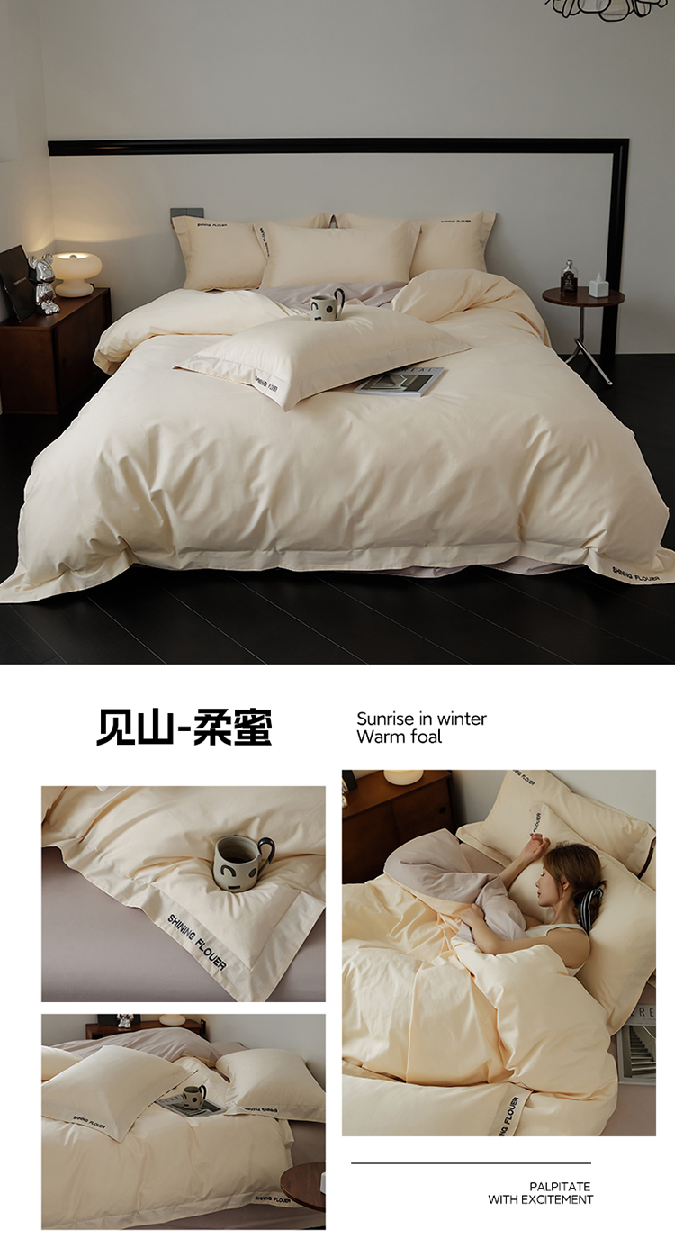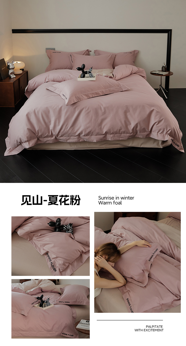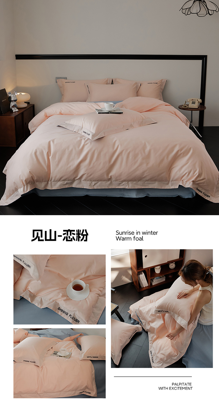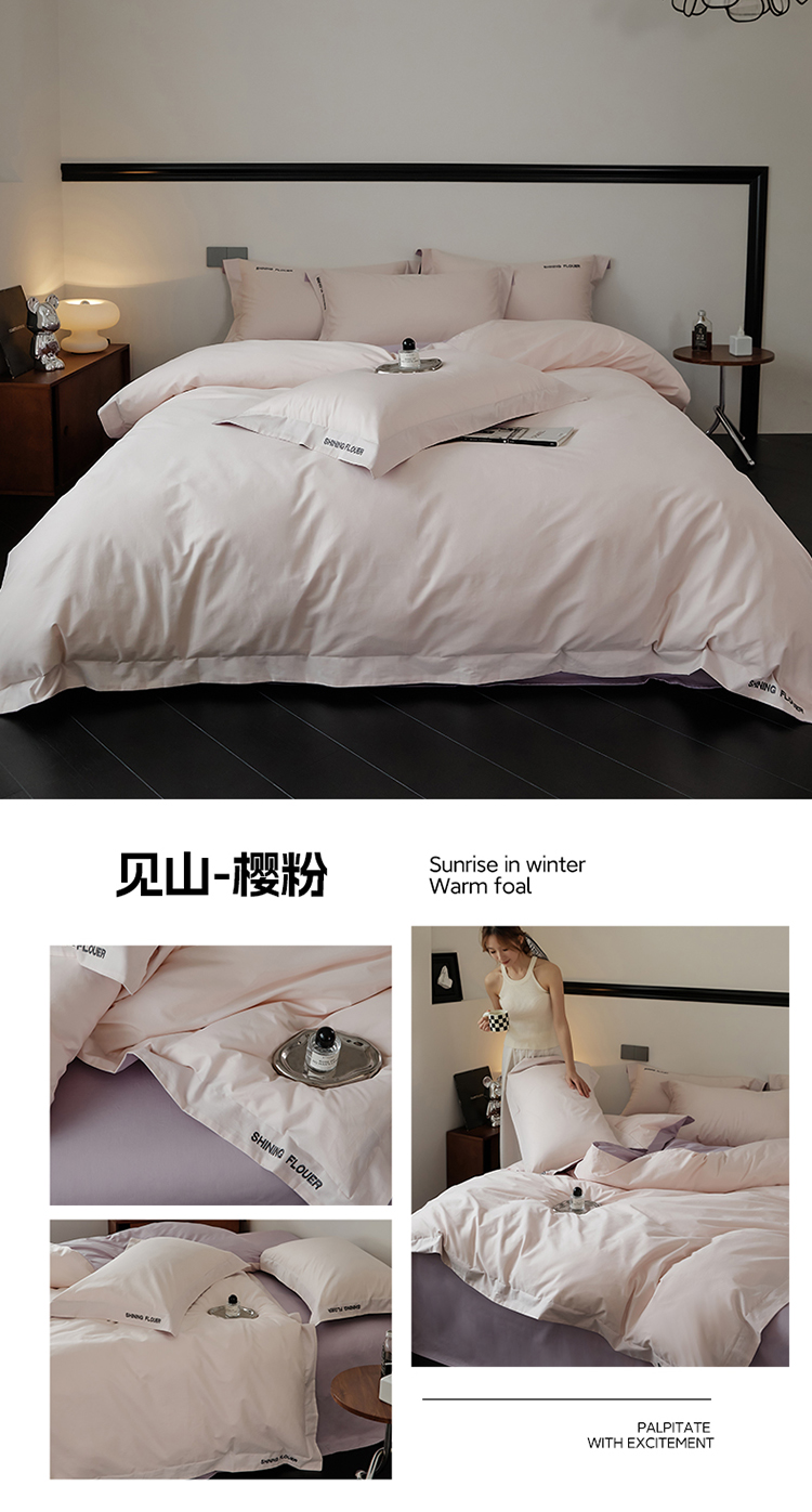 樵纪 见山 年华 200x230cm 40支全棉简绣四件套 1.8米床笠款 粉色(单位:套)