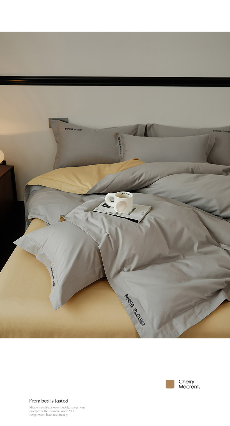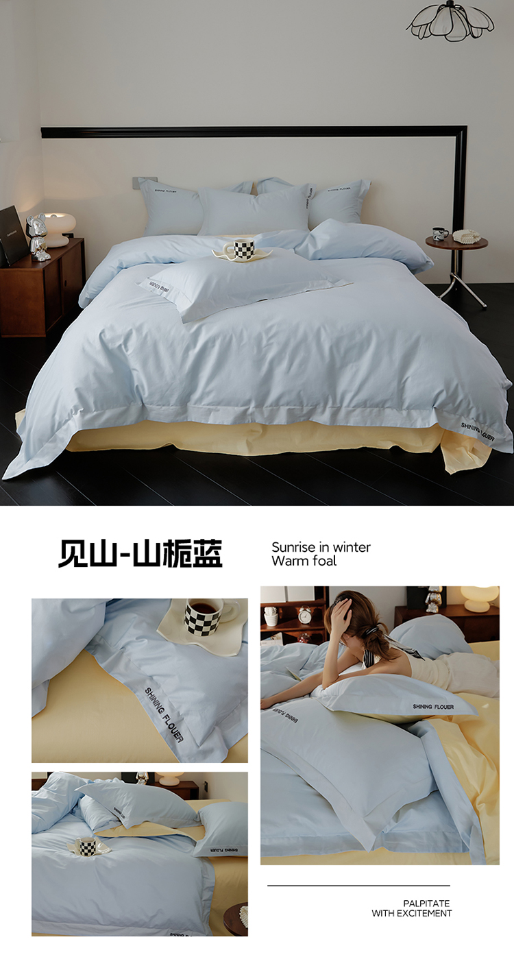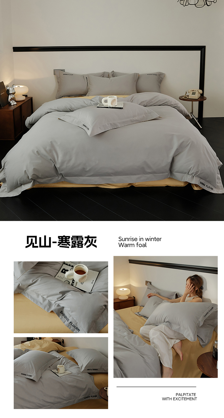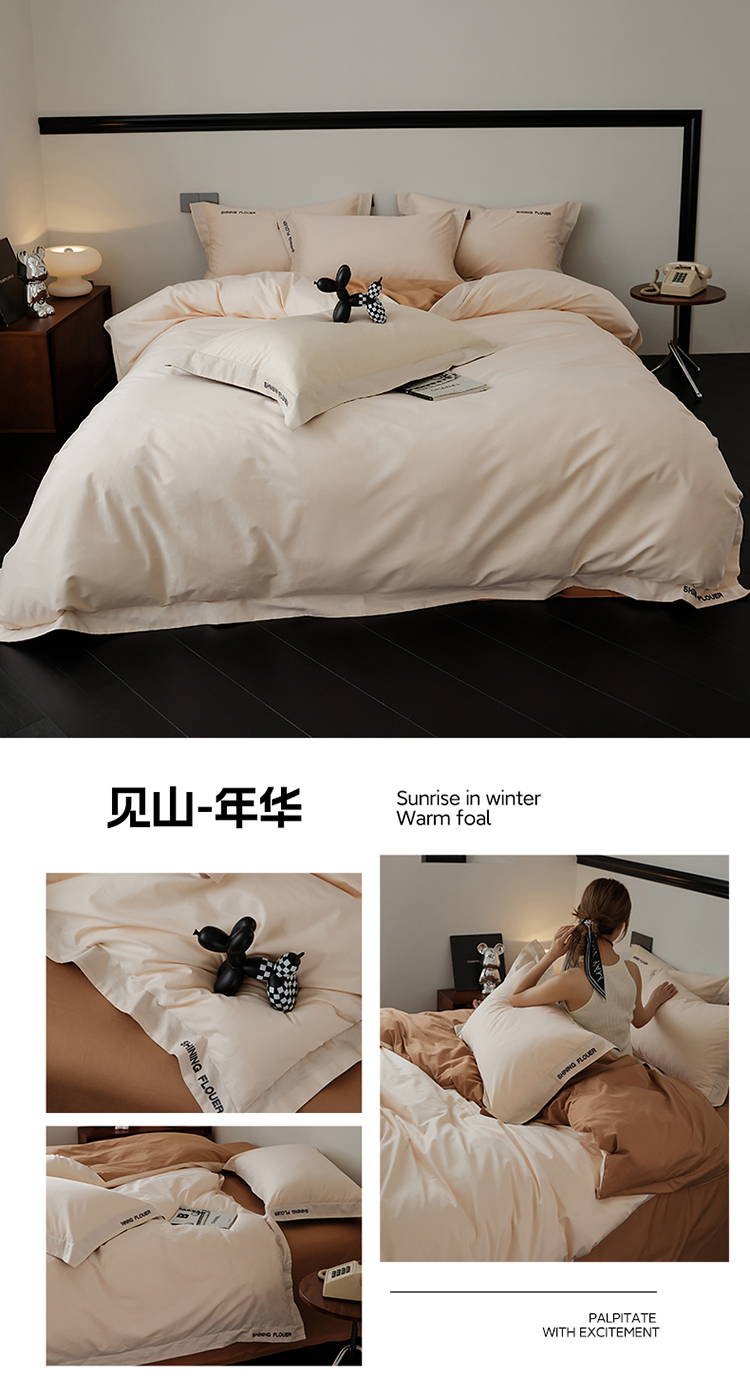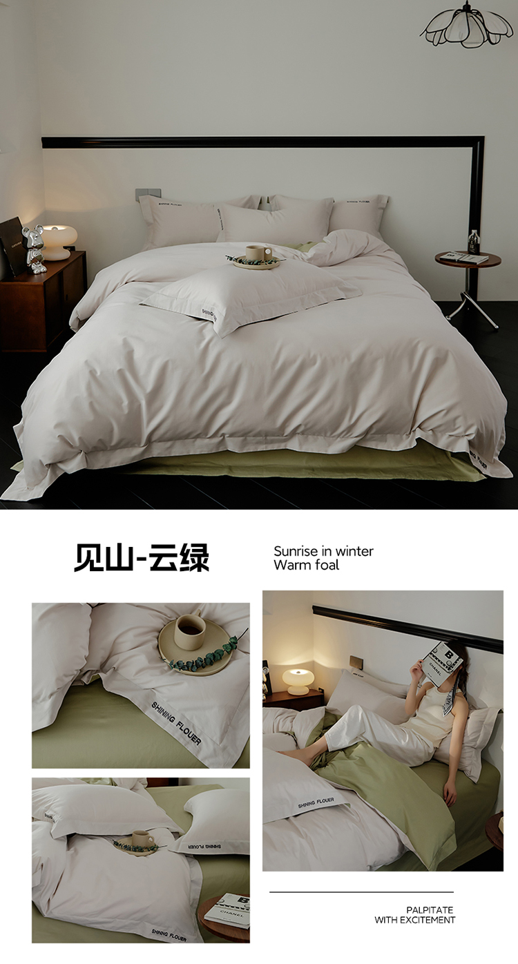 樵纪 见山 年华 200x230cm 40支全棉简绣四件套 1.8米床笠款 粉色(单位:套)