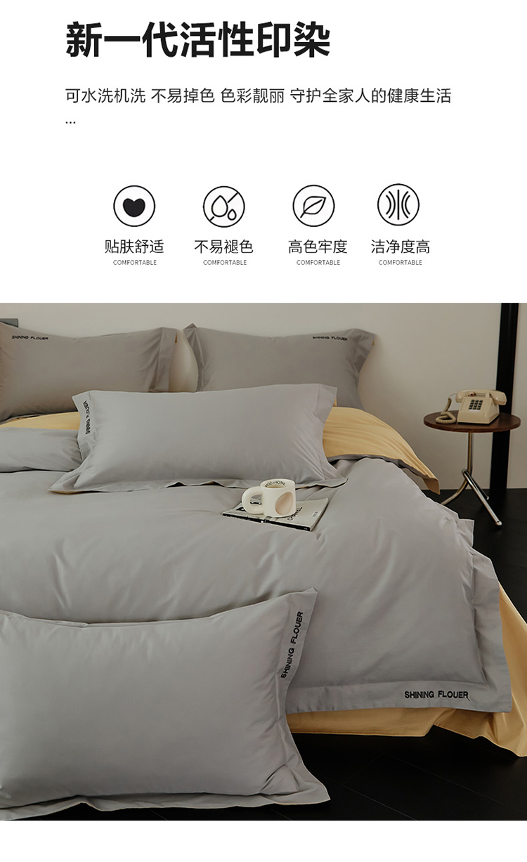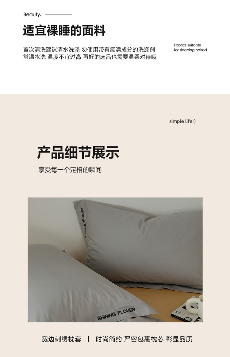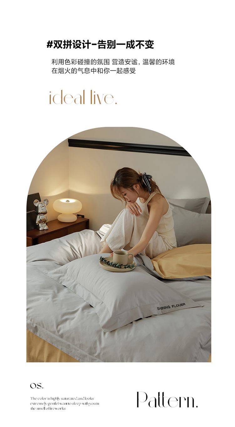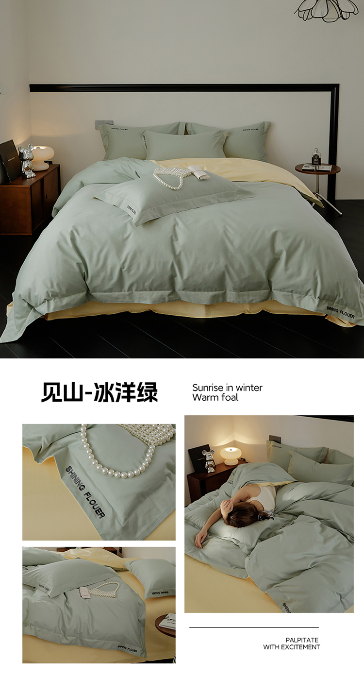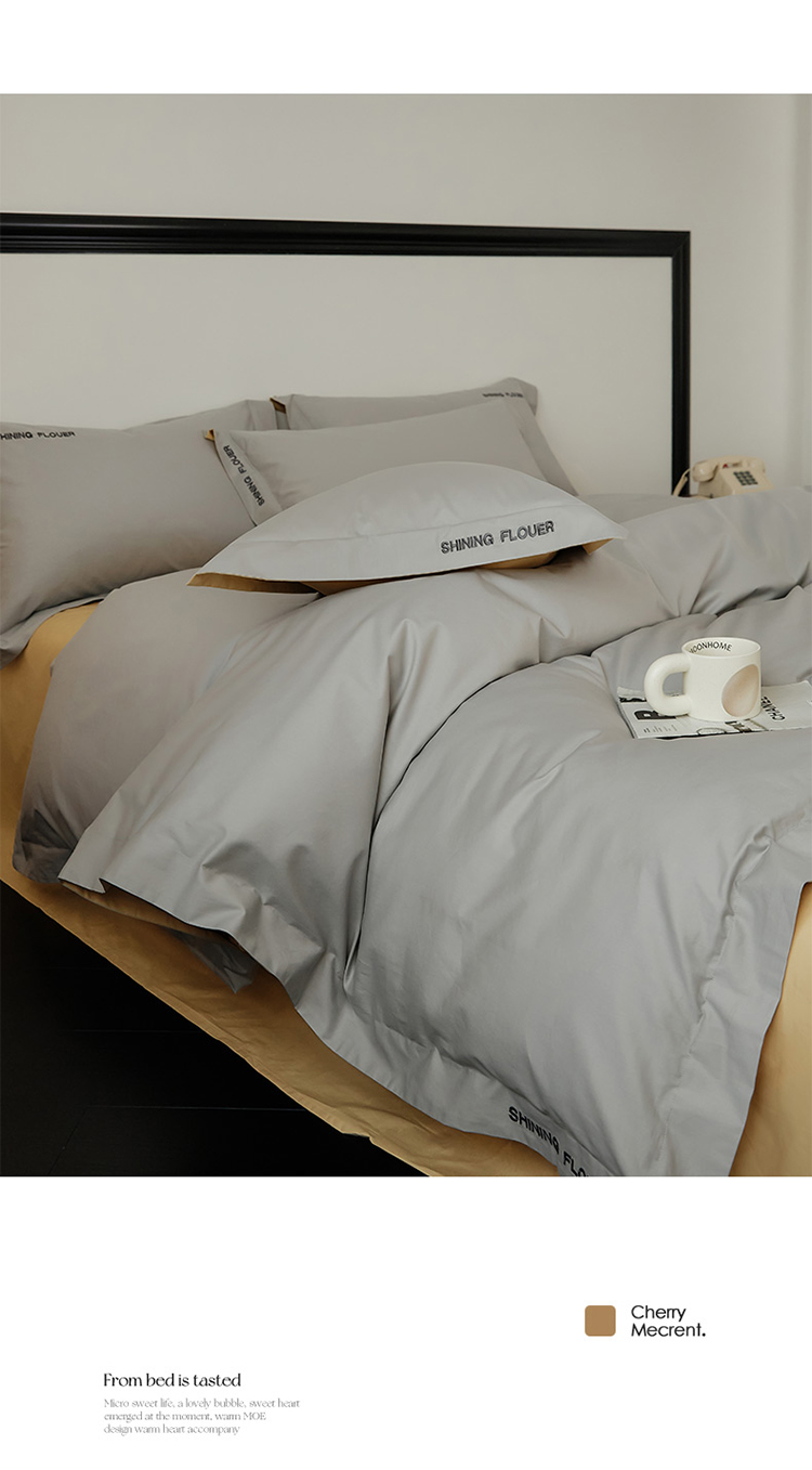 樵纪 见山 年华 200x230cm 40支全棉简绣四件套 1.8米床笠款 粉色(单位:套)