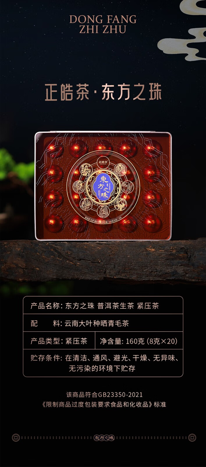 正皓茶 东方之珠 160g 普洱茶生茶 红色(单位:盒)
