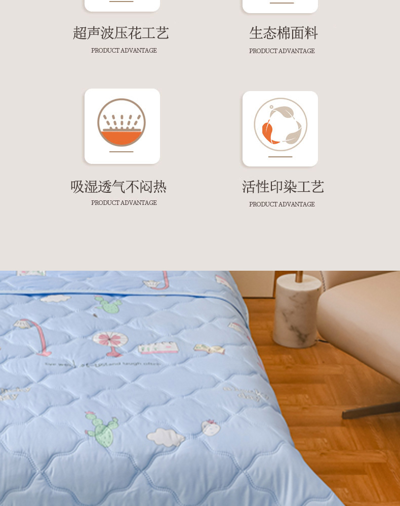 南极人 N02091-2 200*230cm 海藻棉亲肤轻薄空调被 夏日甜心蓝(单位:床)