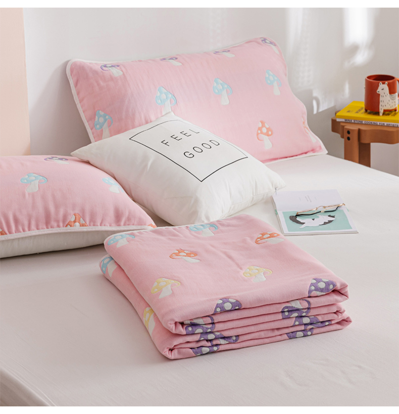南极人 N02027-1 150*200cm 全棉六层纱布空调被 五彩蘑菇粉(单位:床)