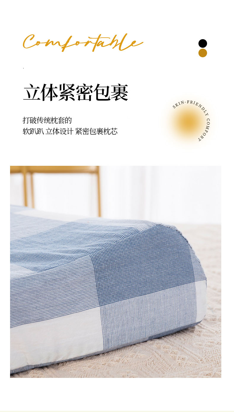 南极人 N03050 一对装40*60cm 纯棉亲肤超舒适乳胶枕 蓝大格(单位:对)