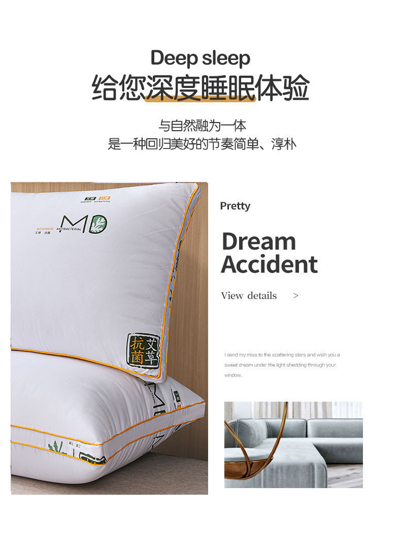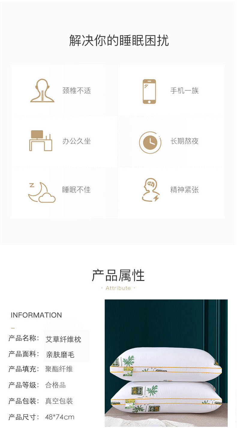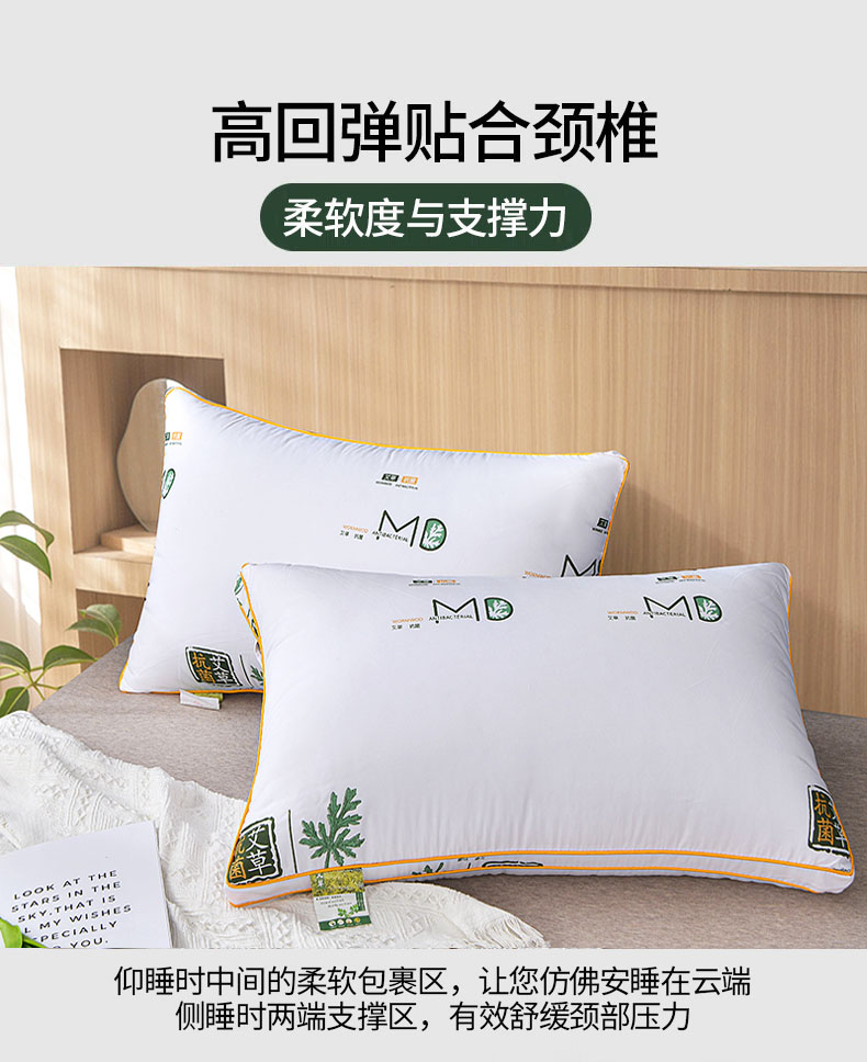 南极人 N03049 一对装48*74cm 双边立体艾草纤维枕 白色(单位:对)