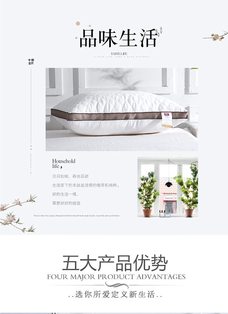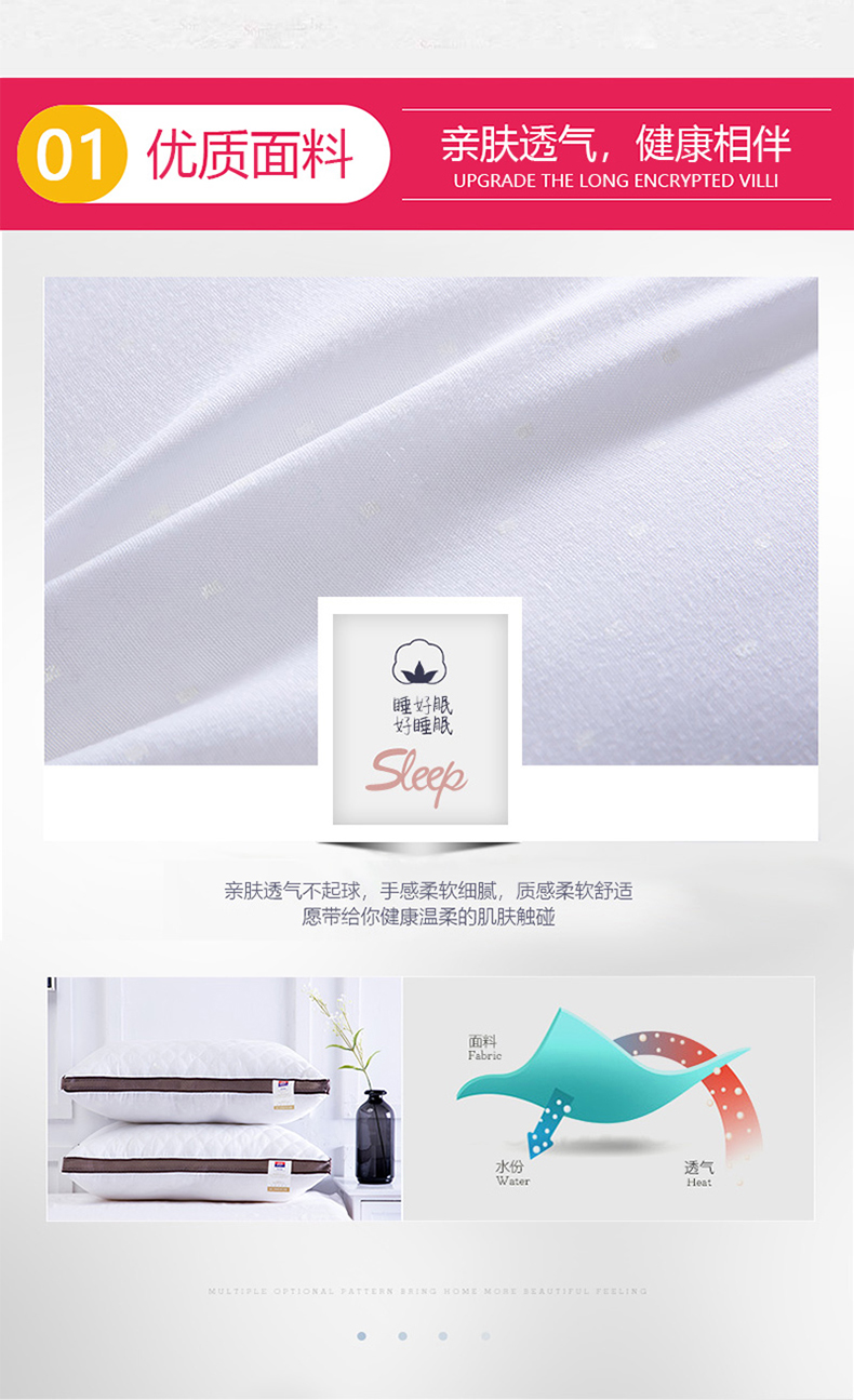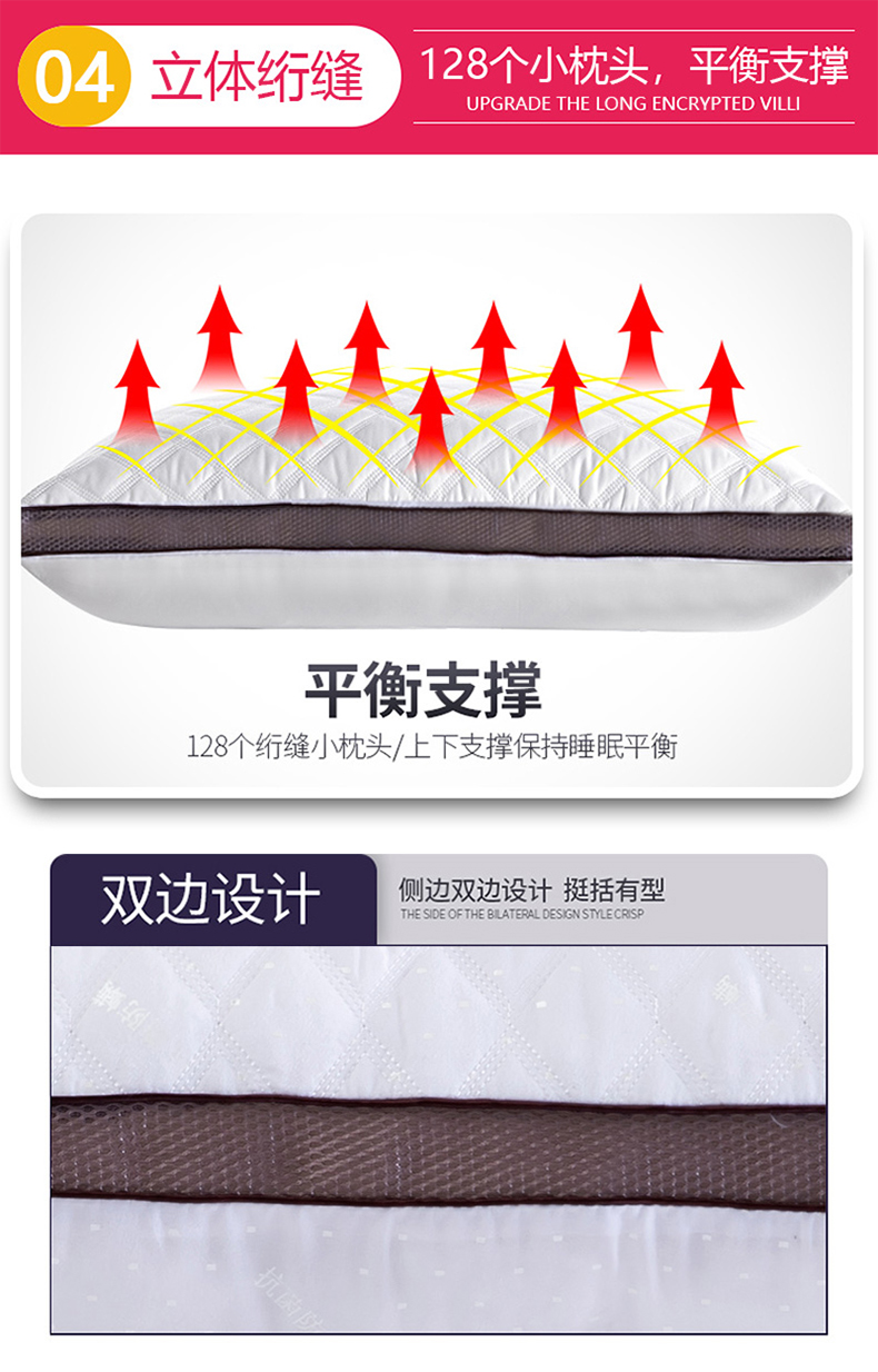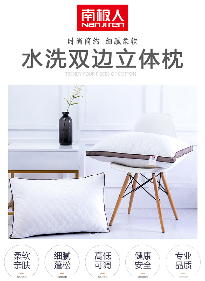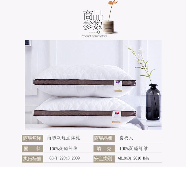 南极人 N03002 一对装48*74cm 水洗绗绣双边立体枕芯 白色(单位:对)