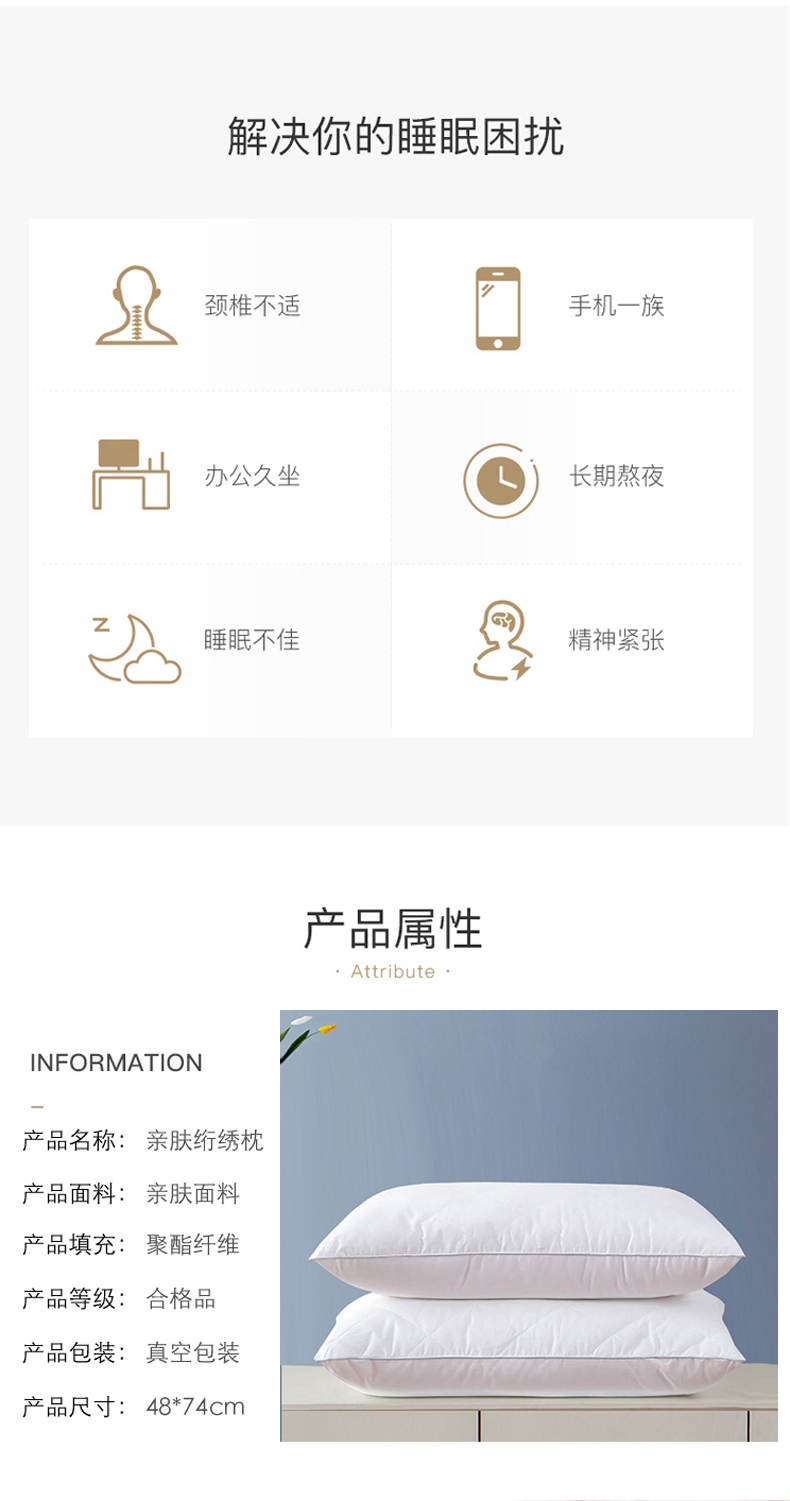 南极人 N03002-1 一对装48*74cm 磨毛绗绣枕单边枕芯 白色(单位:对)