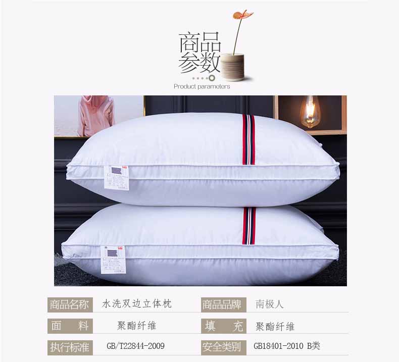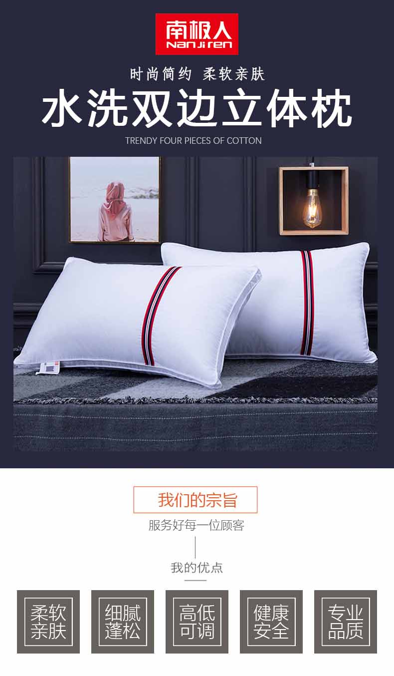 南极人 N03015 一对装48*74cm 亲肤水洗双边立体枕芯 白色(单位:对)