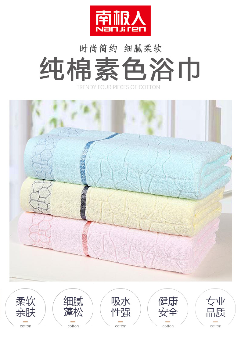 南极人 N08005-2 70*140cm 纯棉素色吸水亲肤浴巾 粉色(单位:条)