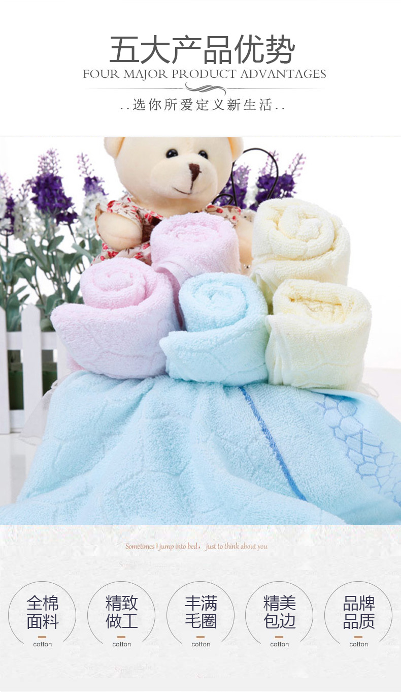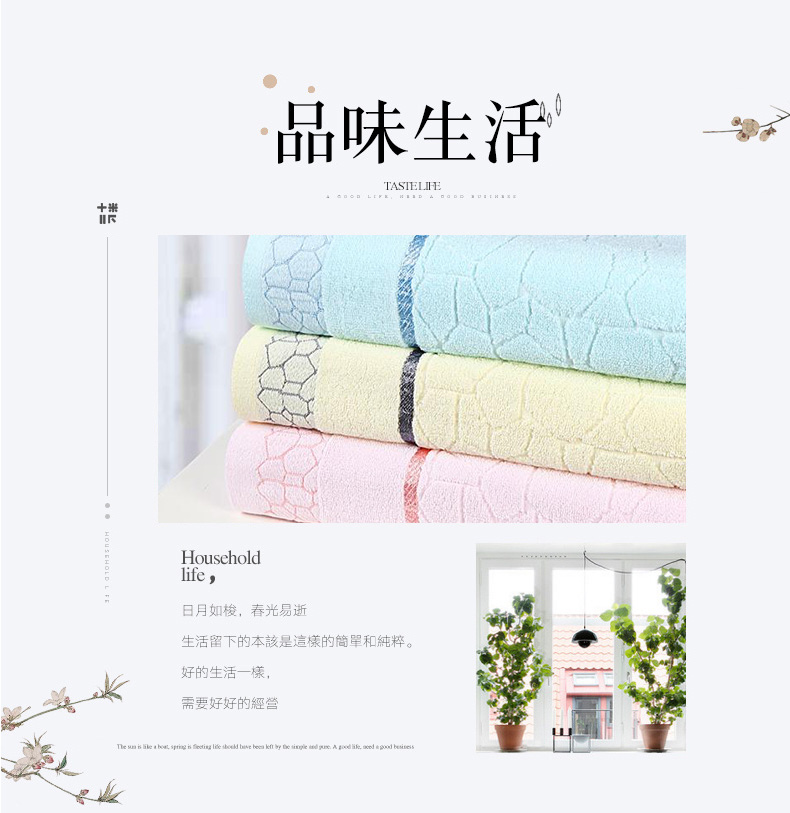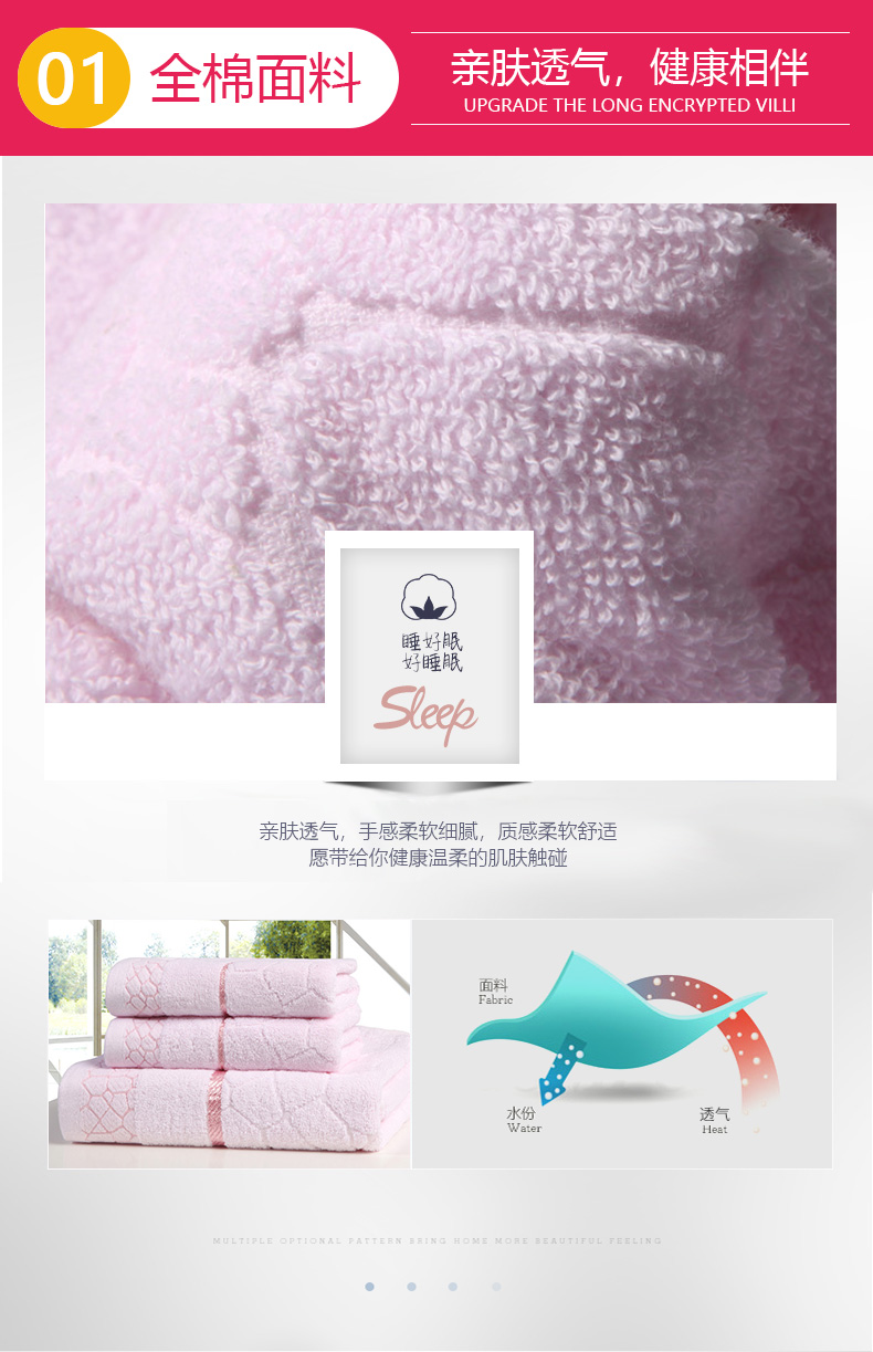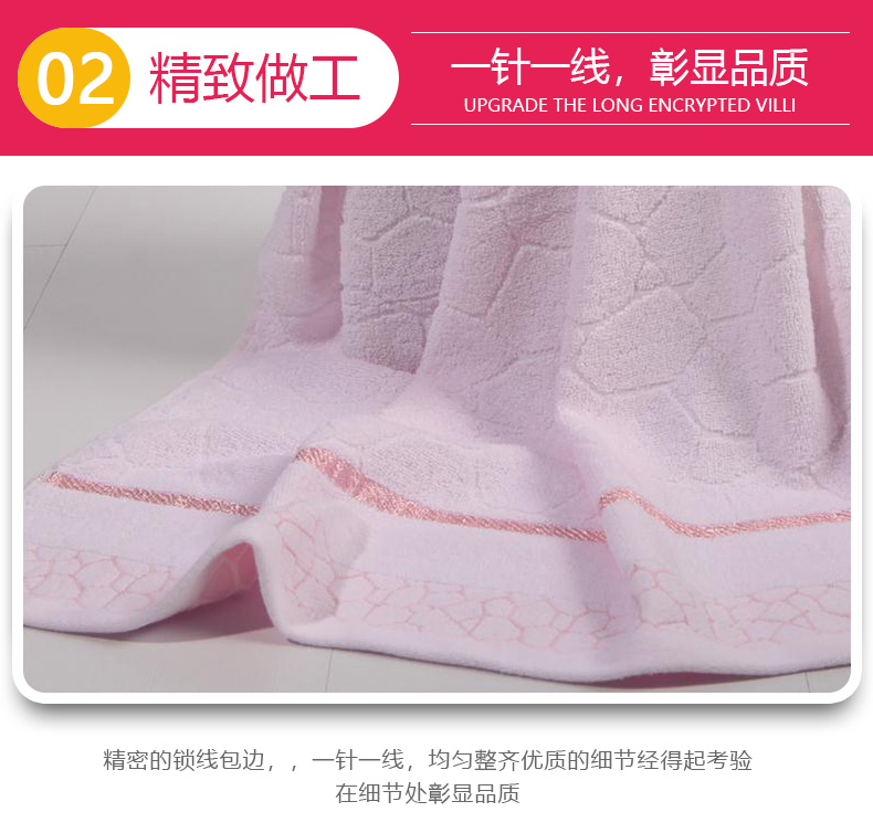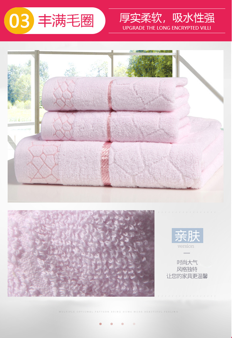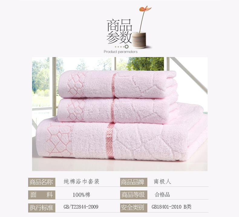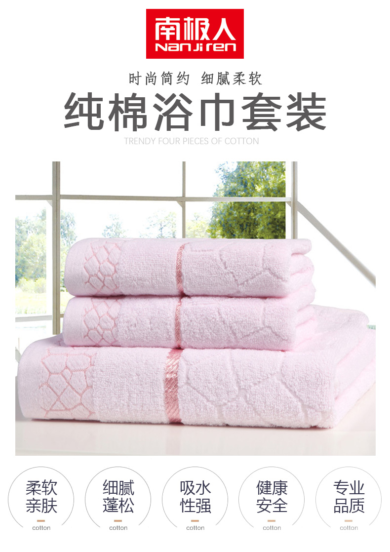 南极人 N08005-3 浴巾70*140cm*1 毛巾34*75cm*2 纯棉水立方浴巾三件套 粉色(单位:条)