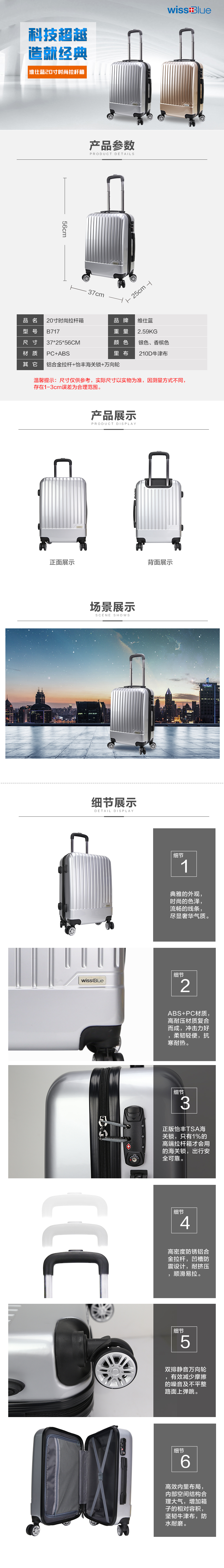 维仕蓝 20寸 时尚旅行拉杆箱 B717536/个 银色