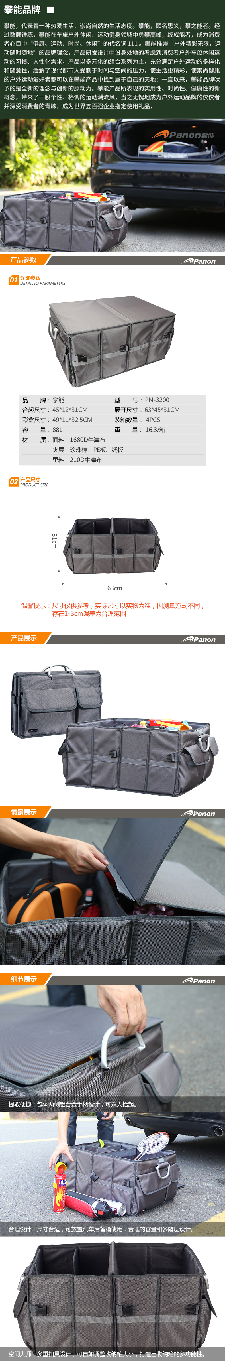 攀能百空间汽车折叠收纳箱PN-3200 褐色 褐色