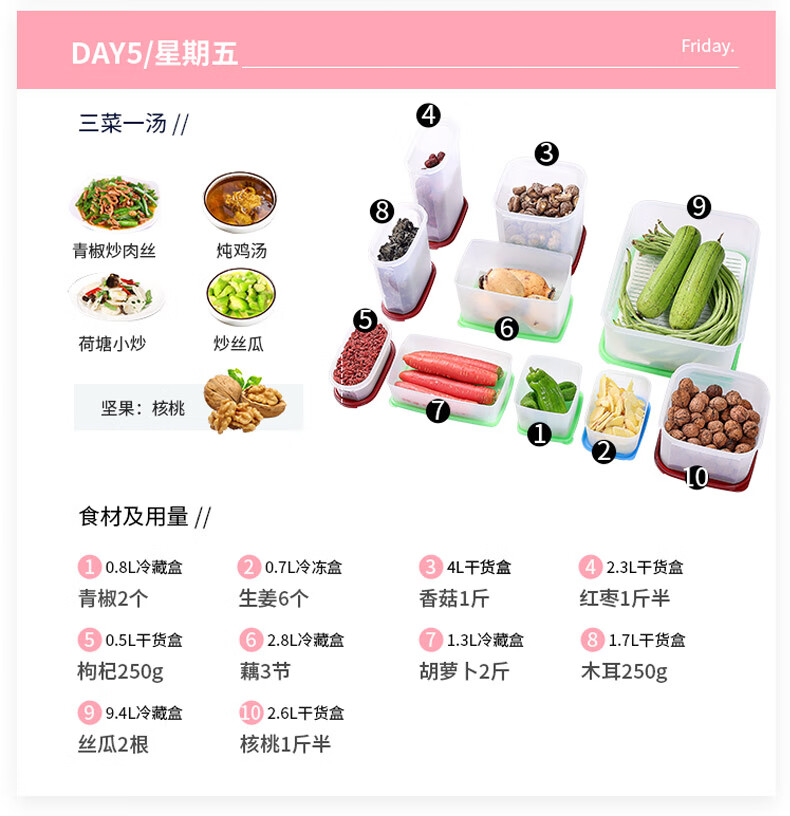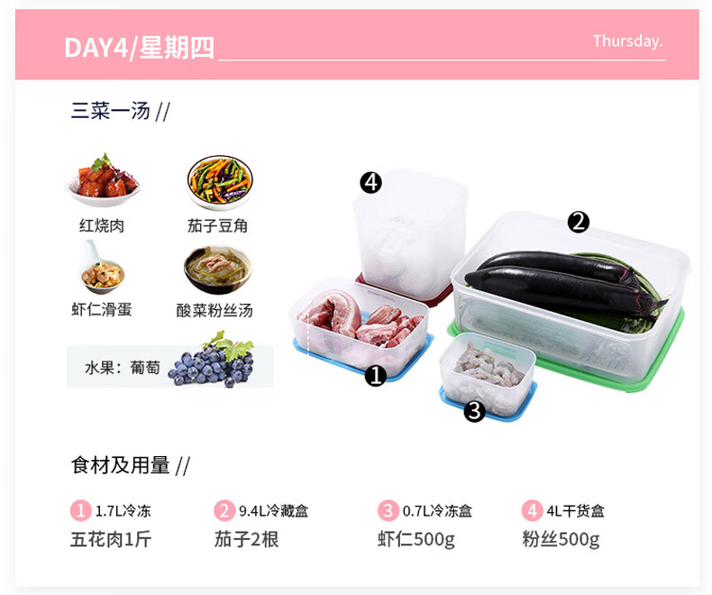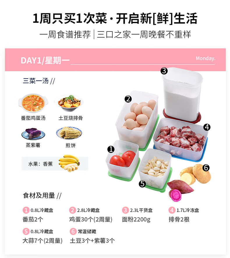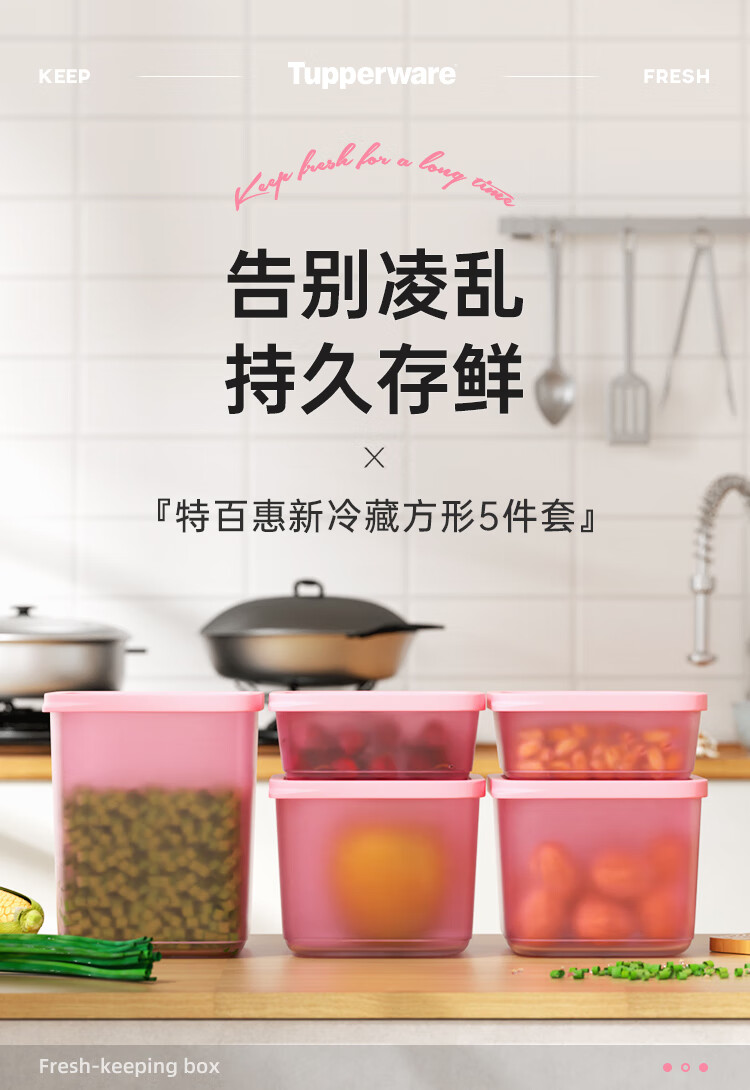 特百惠新冷藏方形套装(11163860)5件套 粉色