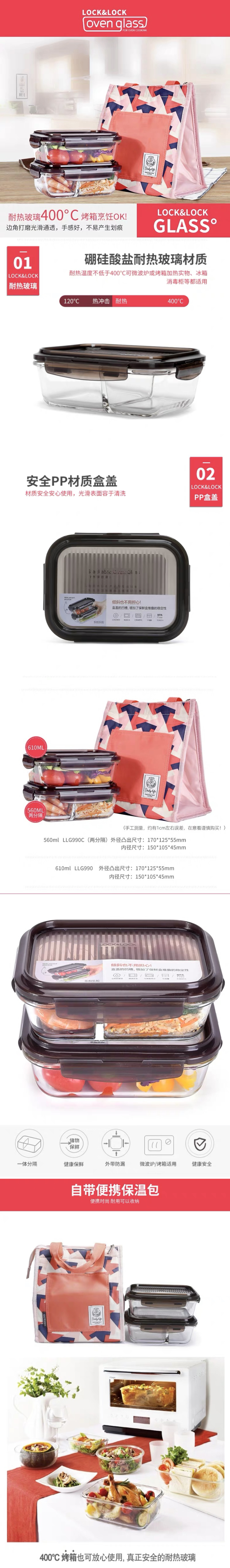 乐扣乐扣(LOCK&LOCK)玻璃饭盒分隔微波炉便当盒带饭保鲜盒LLG990S101(单位:套) 粉色
