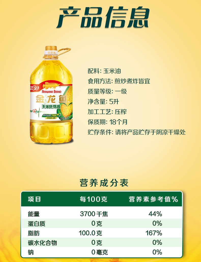 金龙鱼 玉米胚芽油 5L 压榨玉米油 黄色(单位:桶)