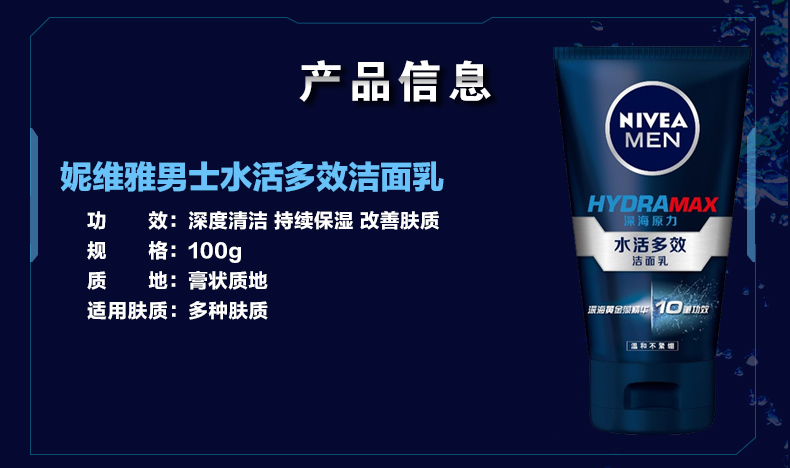 妮维雅男士水活多效洁面乳100g 香槟黄 香槟黄