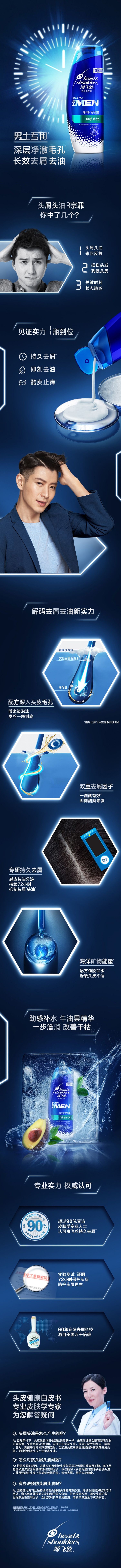 海飞丝男士去屑洗发露多效劲感水润380ml/瓶 混色
