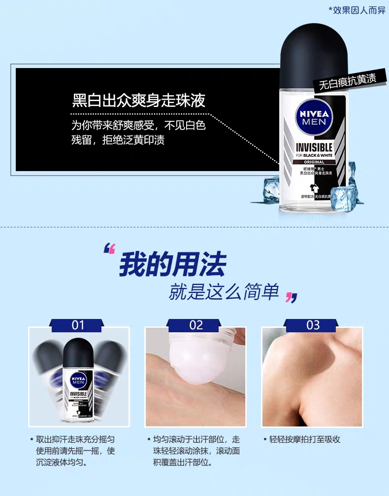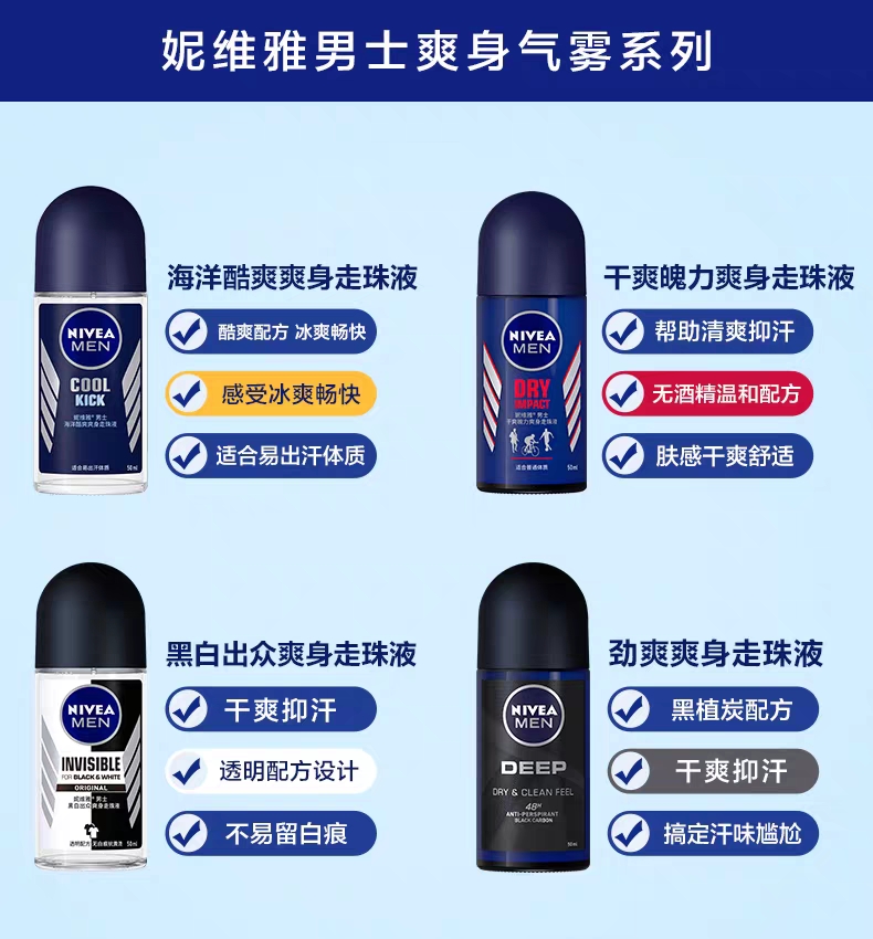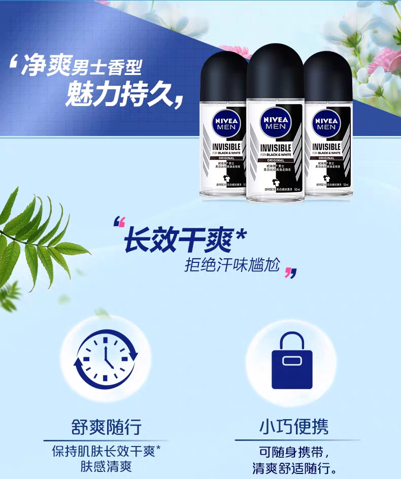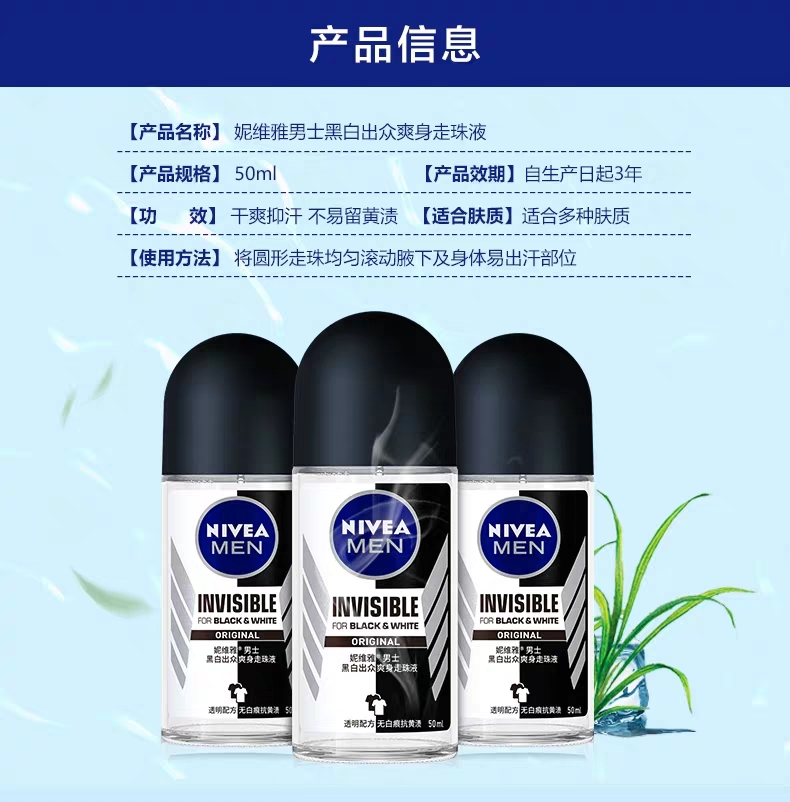 妮维雅男士黑白出众爽身走珠液50ml瓶 绿茶 绿茶