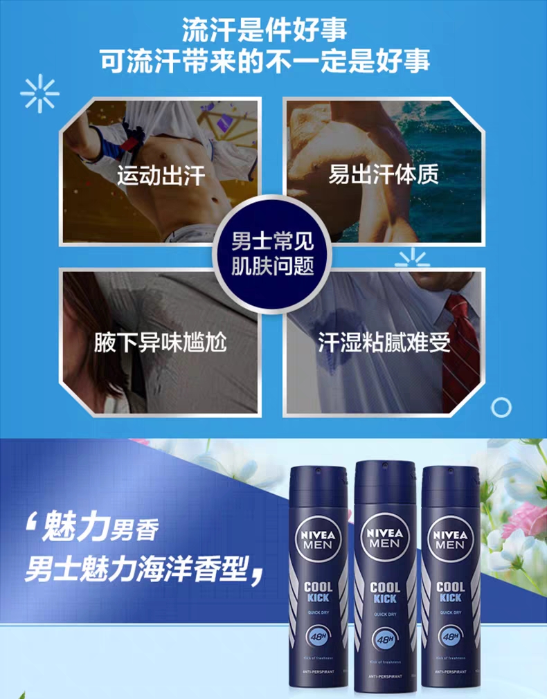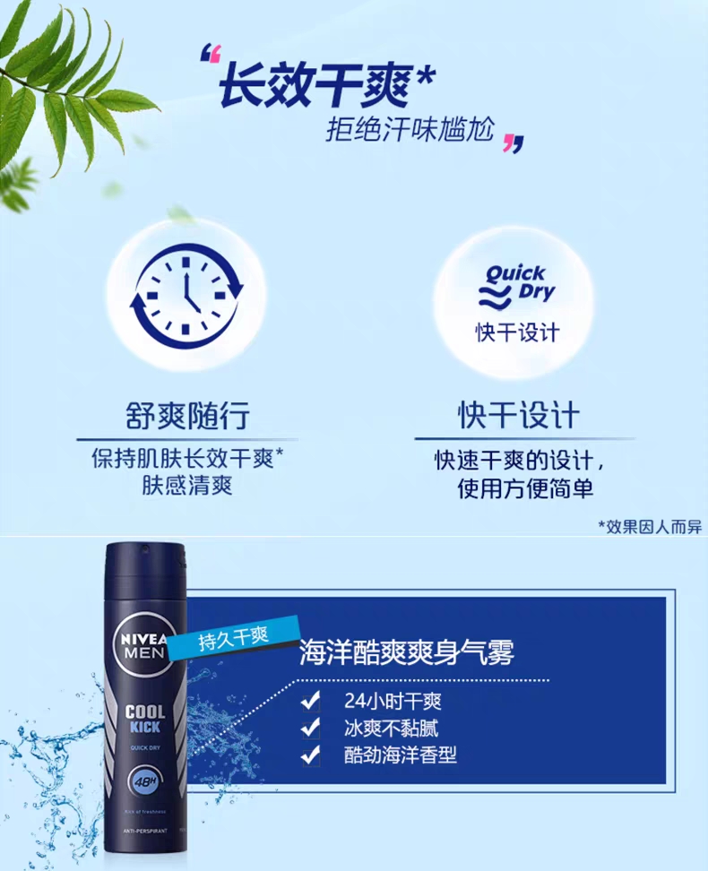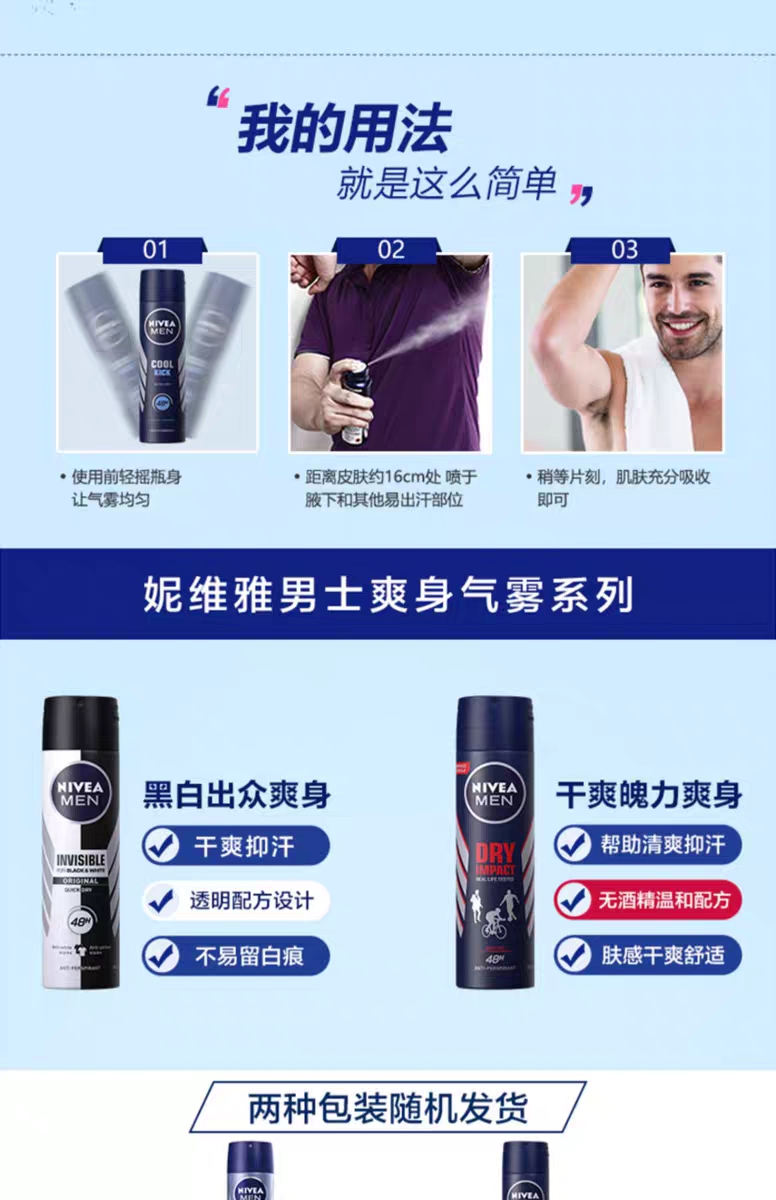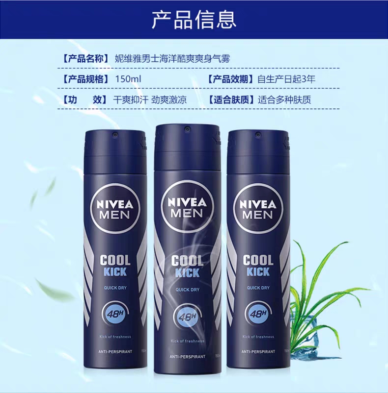 妮维雅男士海洋酷爽爽身气雾150ml 花香型 花香型