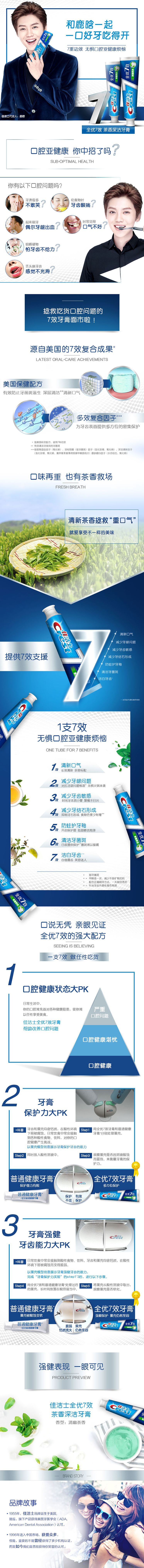 佳洁士全优7效茶香深洁牙膏120克*3支 混色