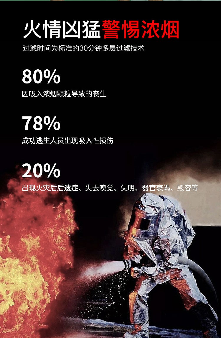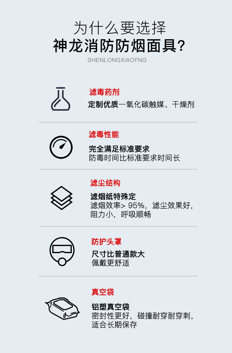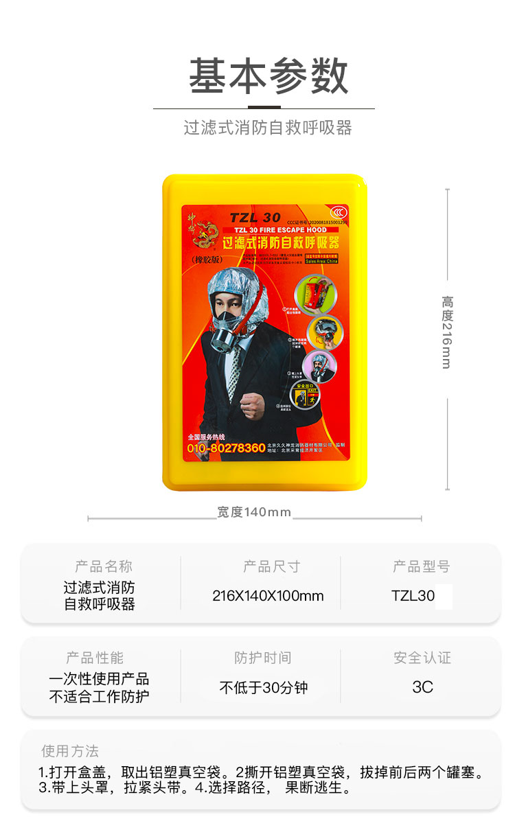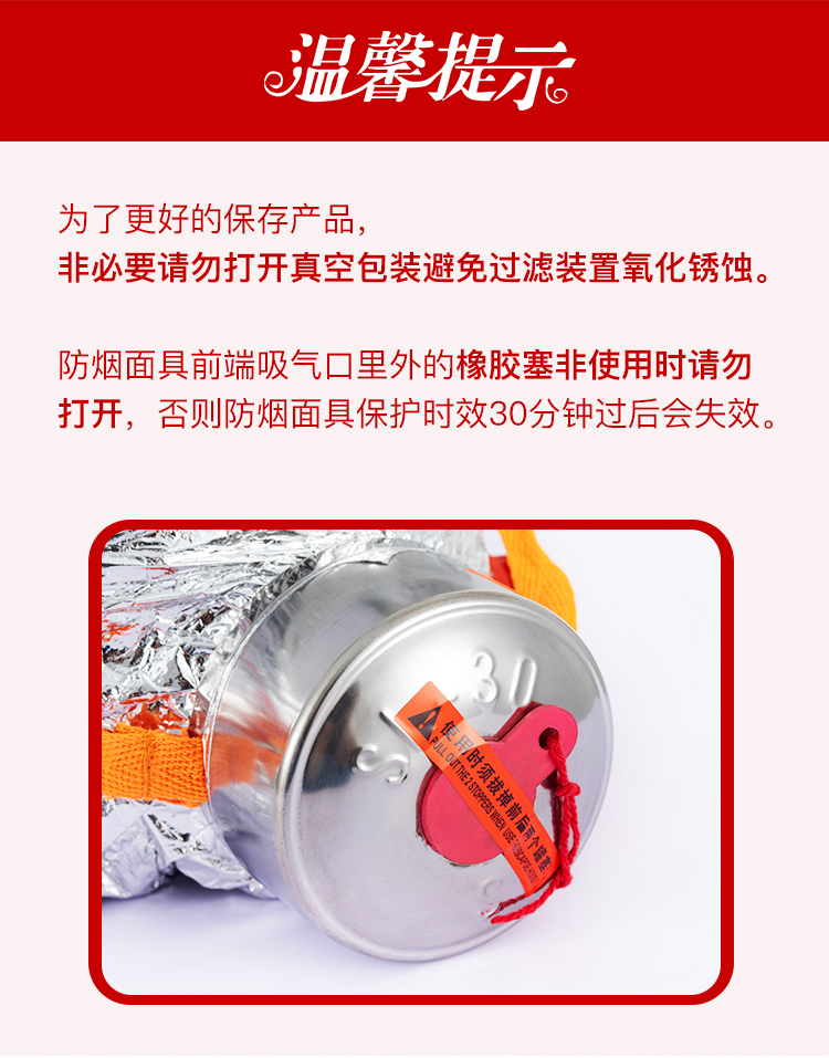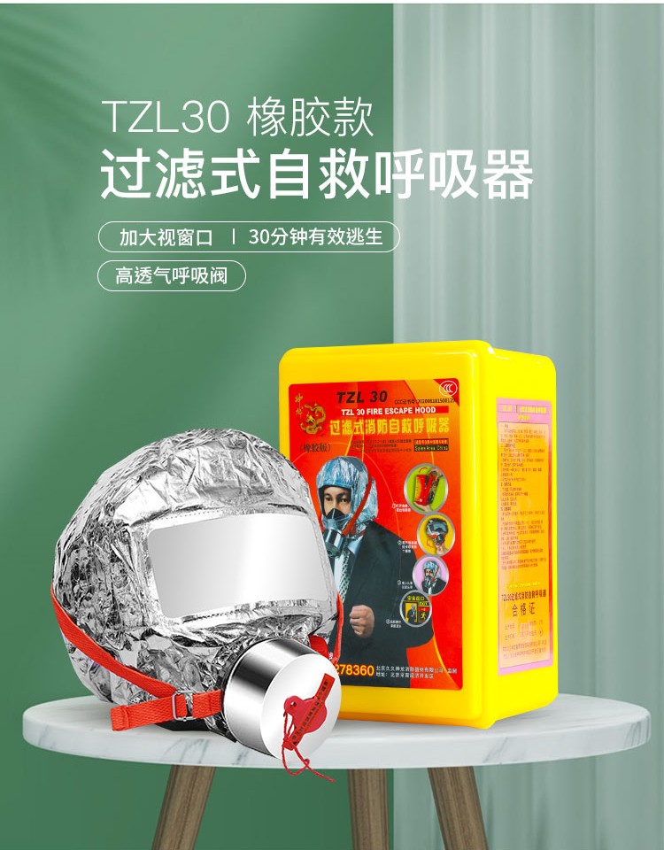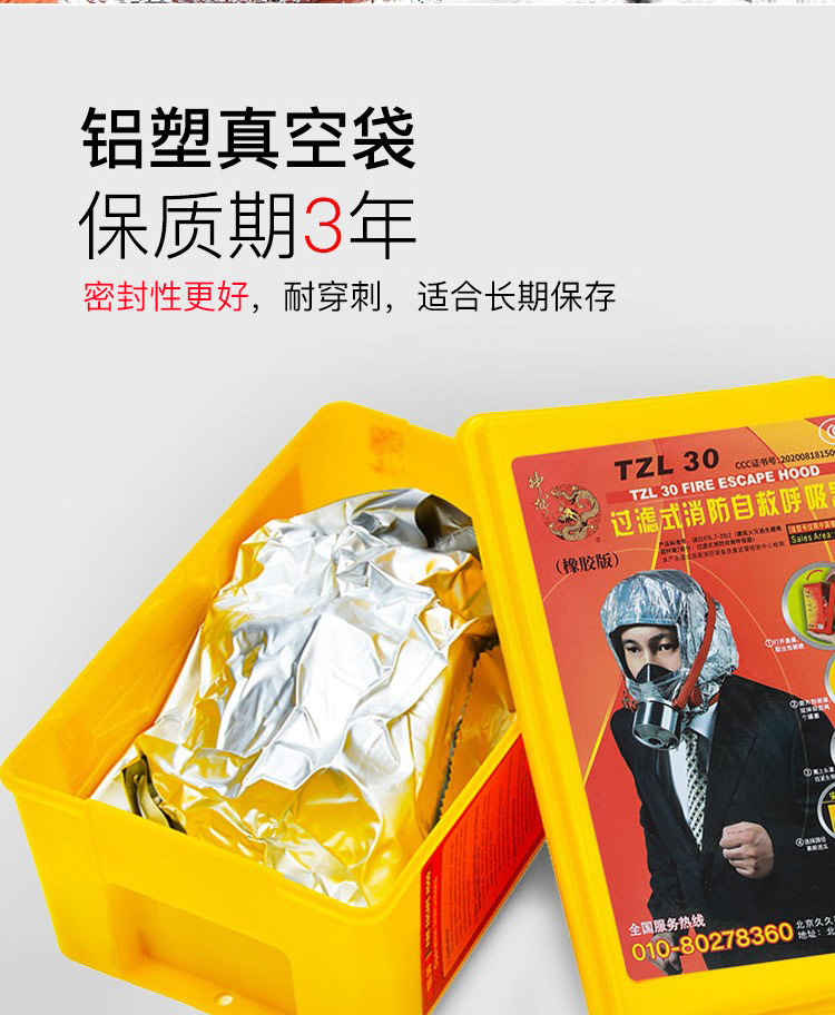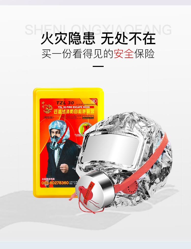 神龙 灭火器搭配用 消防面具面罩 过滤式自救呼吸器 防毒面具30型 火灾逃生防烟面具 TZL30 银色