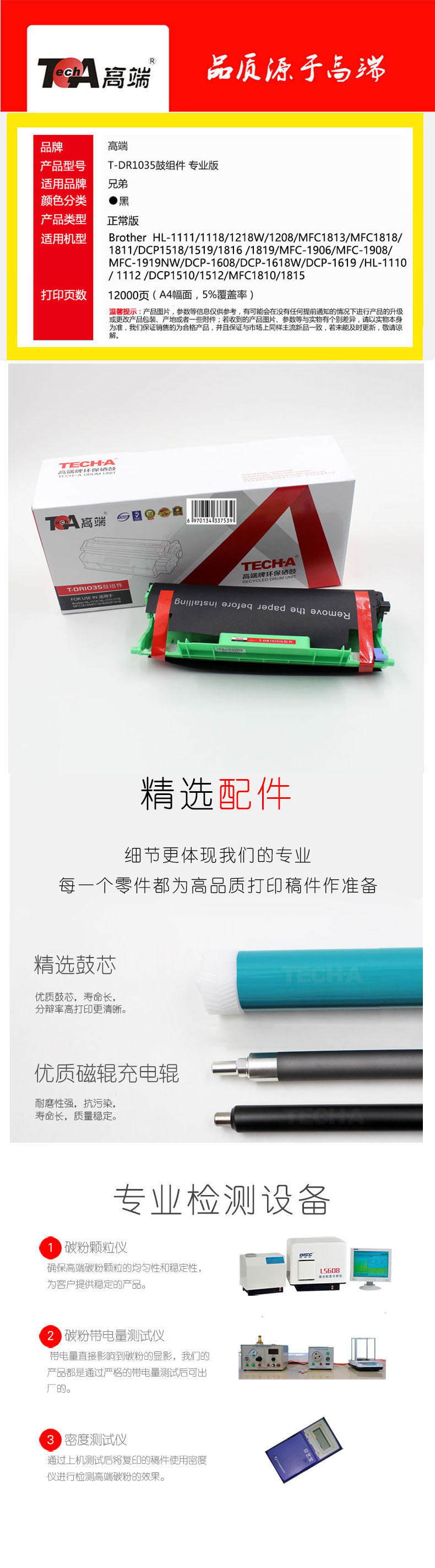 高端(TECH-A)T-DR1035鼓组件适用兄弟DCP1618w 1608粉盒HL1208 1218w MFC1919nw鼓架 黑色