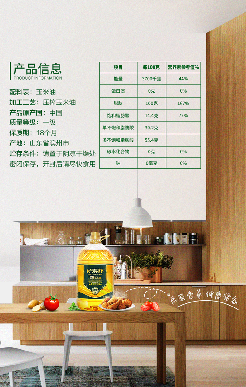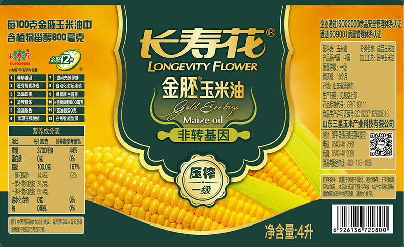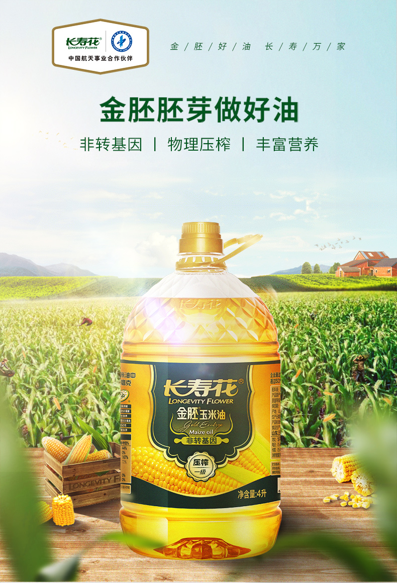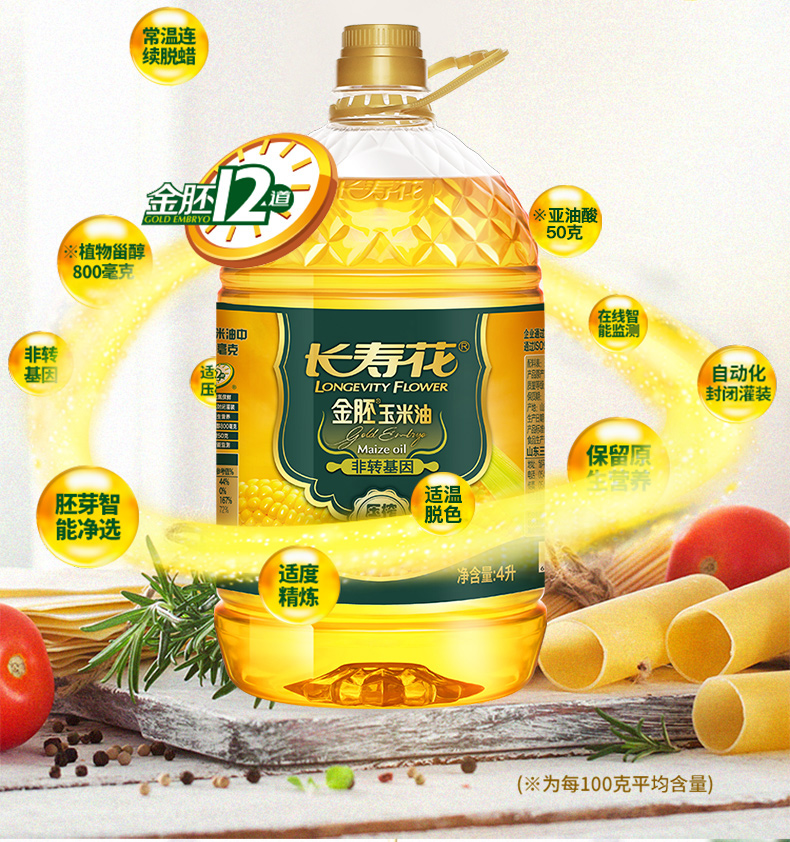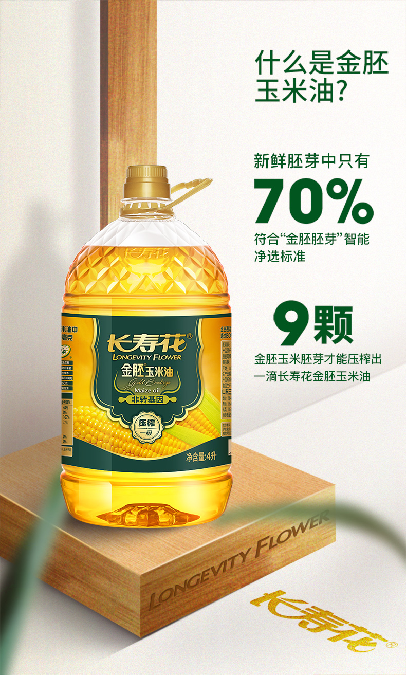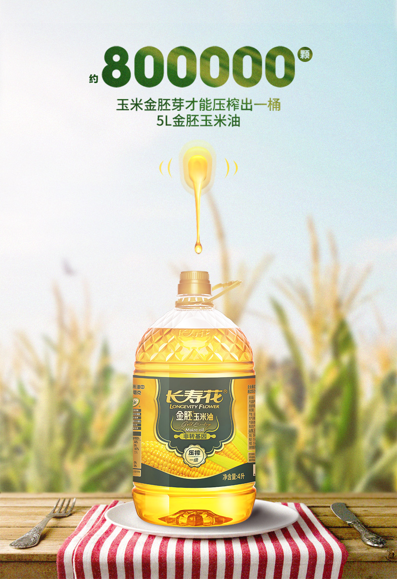 长寿花 金胚玉米油 4L 食用油 非转基因压榨一级(单位:桶)