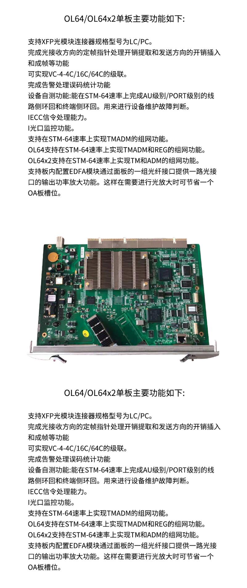 中兴(ZTE) ZXMP S385光端机10G光口板 S385移动通信设备 OL64*1I-64.1单板 1路STM-64光线路板 绿色