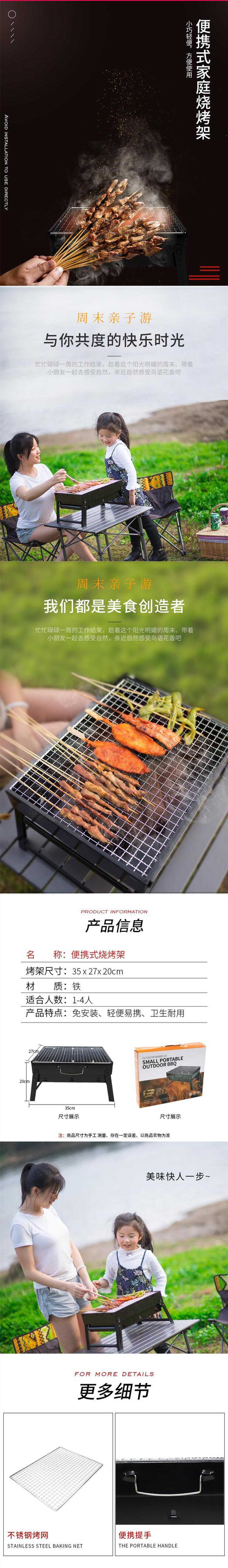 狼行者便携式家庭烧烤架LXZ-5034 铁灰色