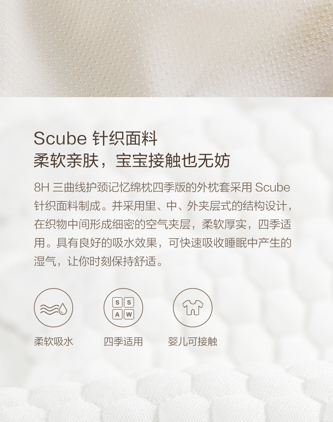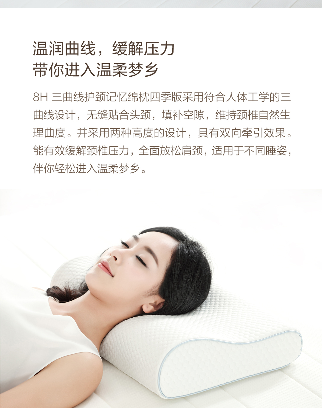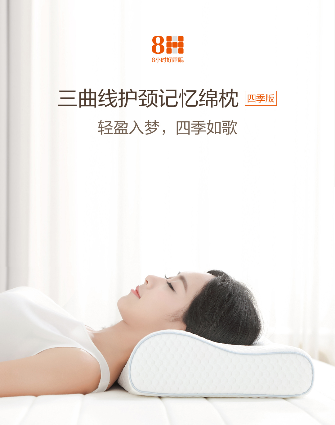 8H 生态链 三曲线成人枕芯 慢回弹太空记忆绵枕头 H1记忆枕 四季(有品)(单位:个) 白色
