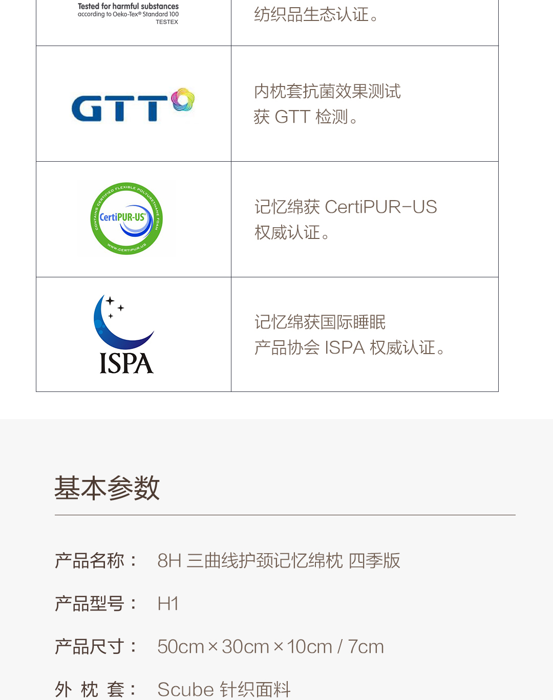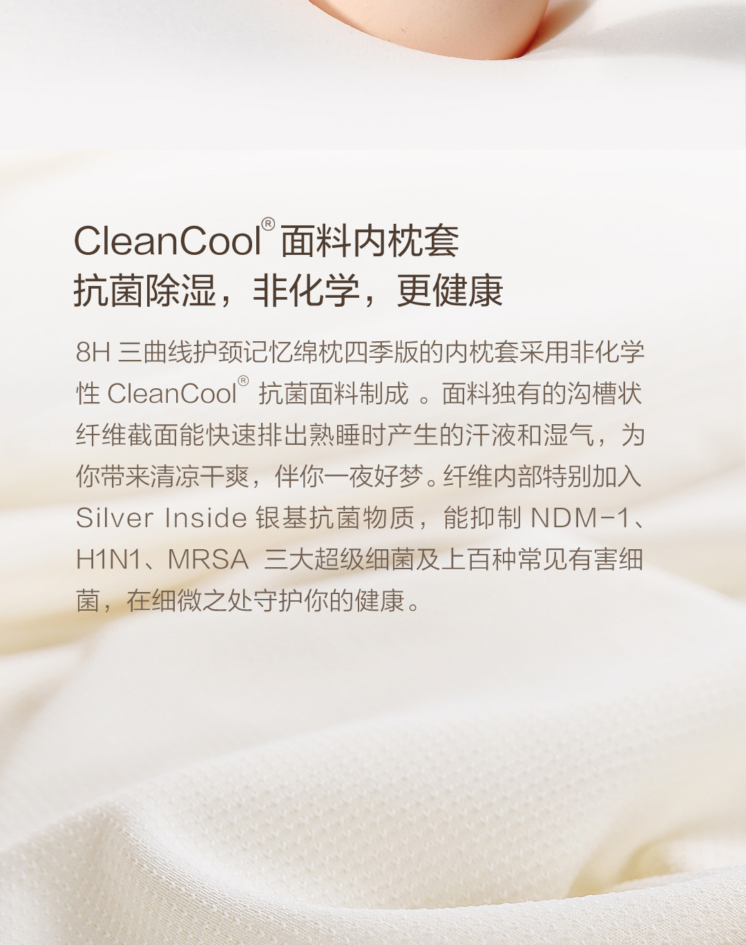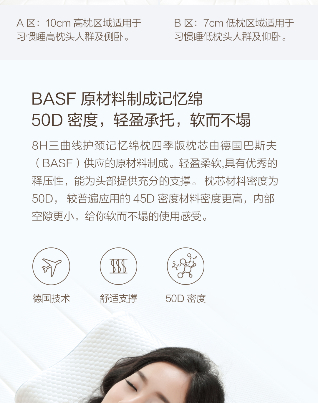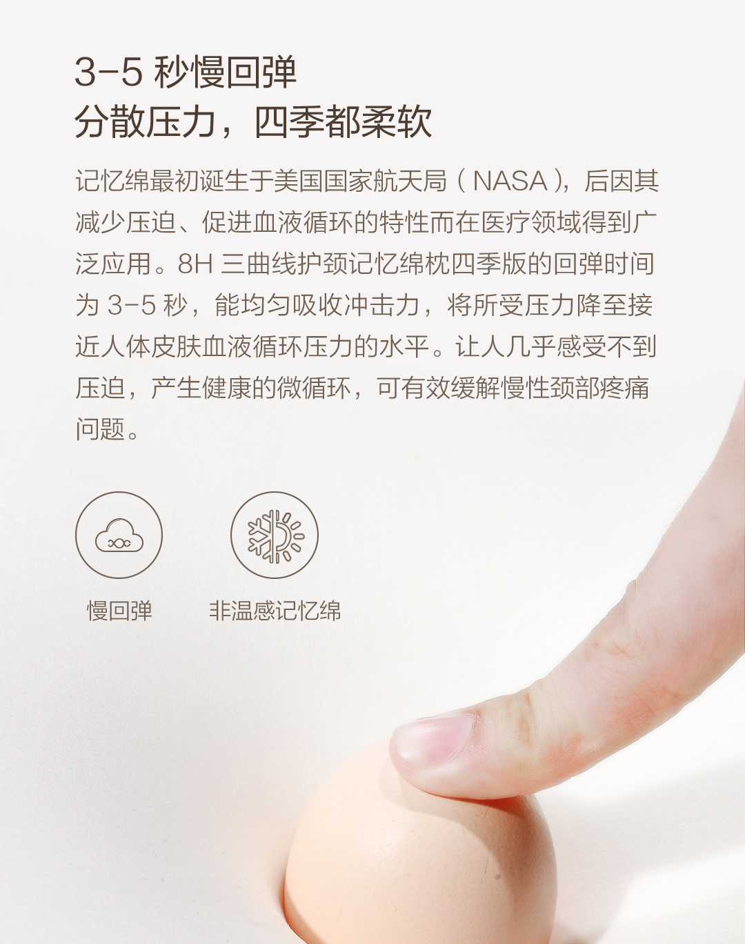 8H 生态链 三曲线成人枕芯 慢回弹太空记忆绵枕头 H1记忆枕 四季(有品)(单位:个) 白色